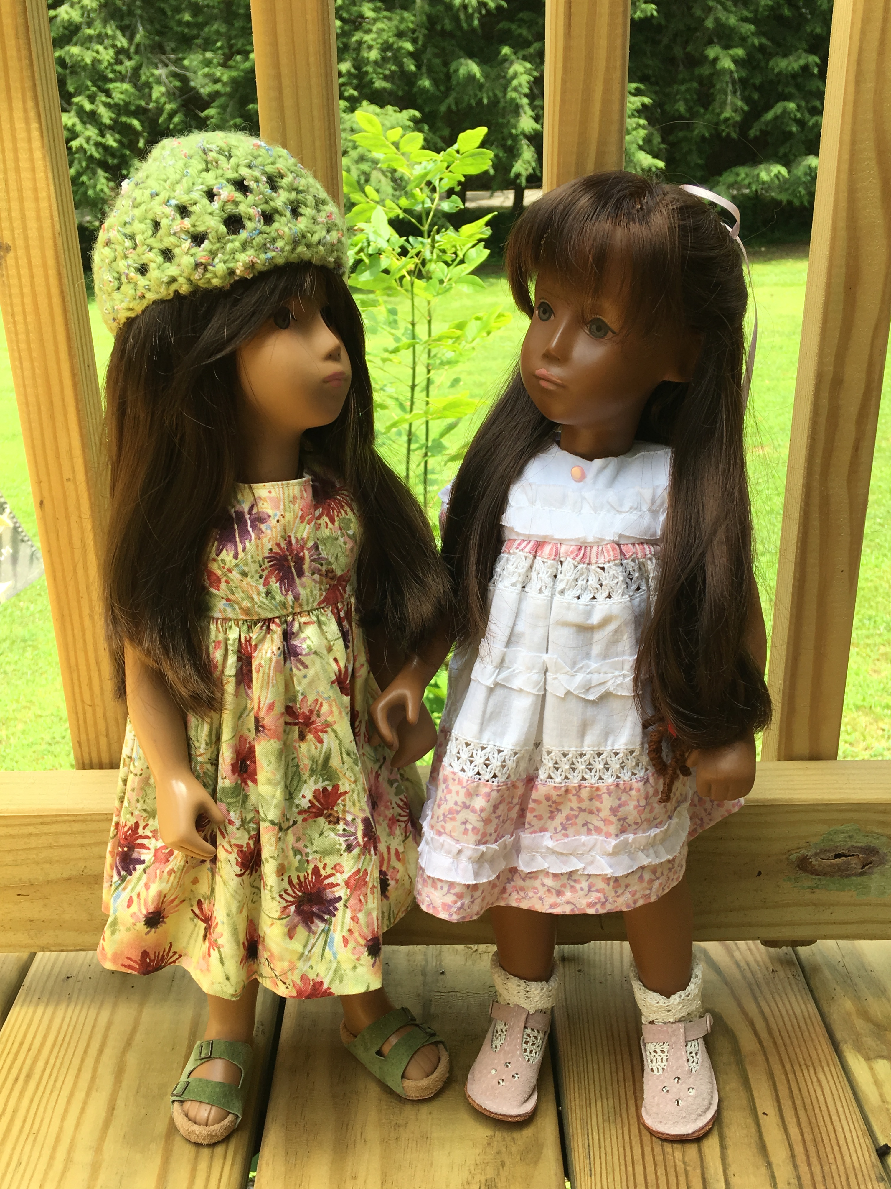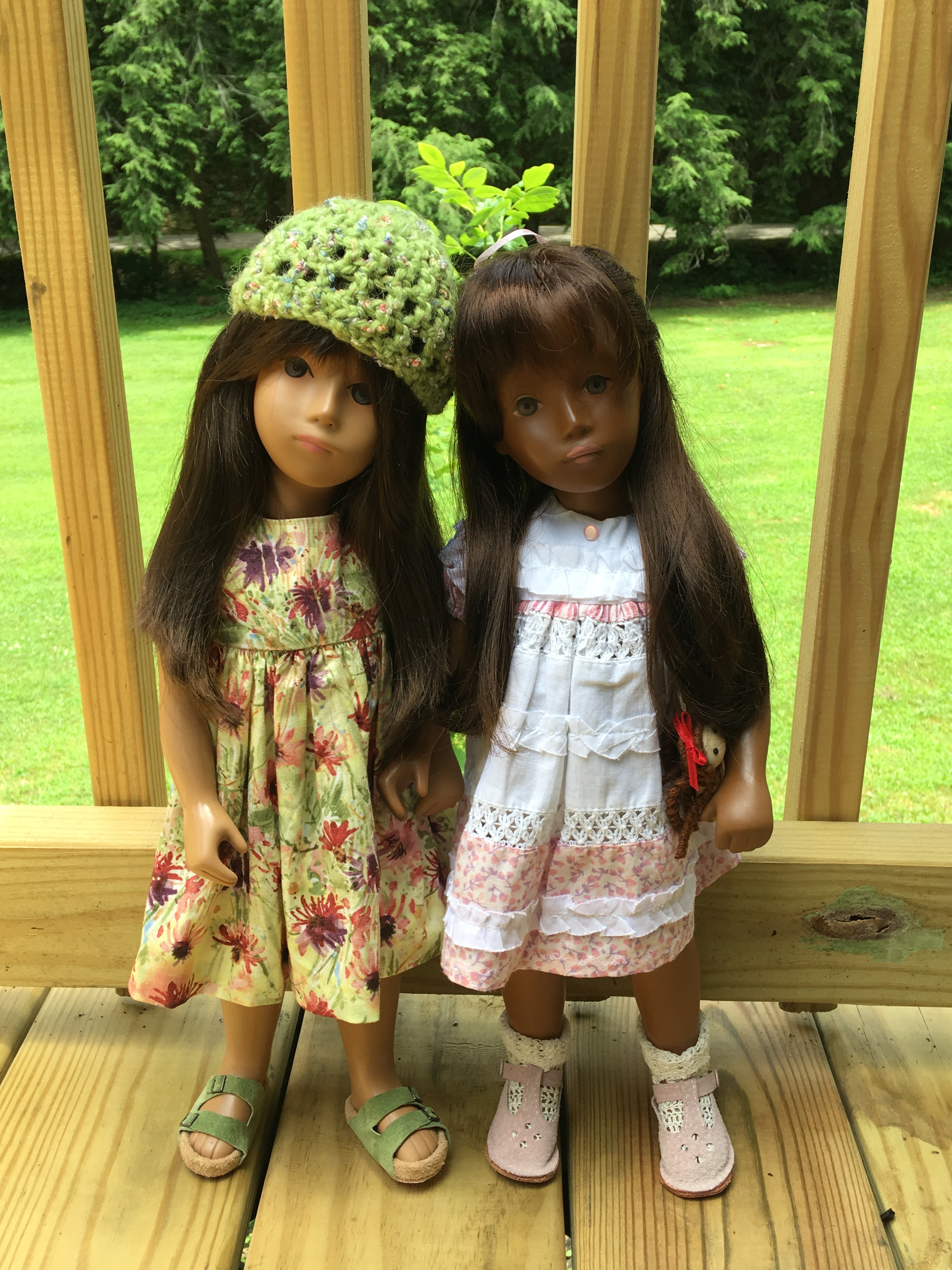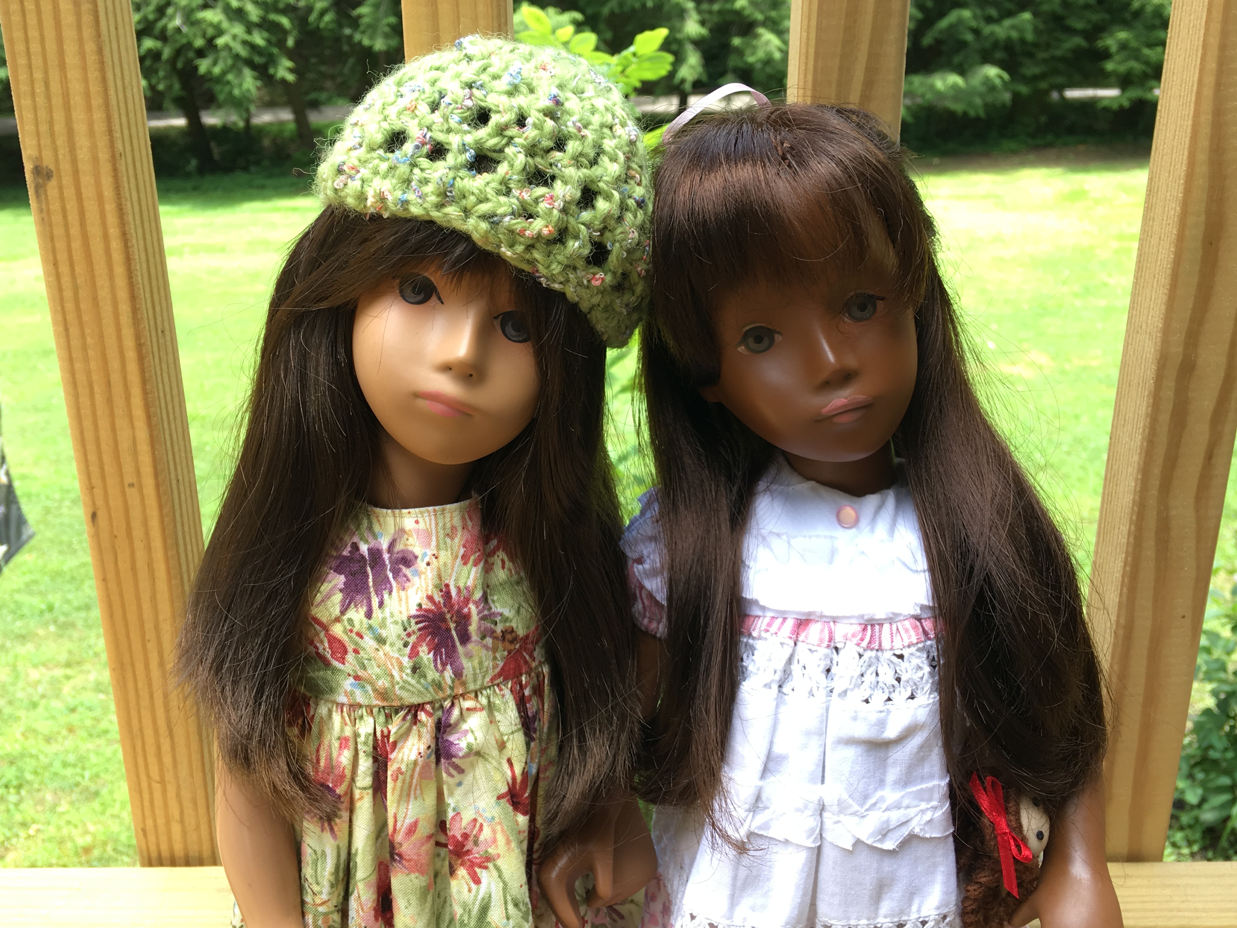 Here is Kris with another new arrival and a ski doll. This sweet cloth doll with a handpainted felt face was a Christmas gift from a dear friend. She was made in Norway by Ronnaugh Petterssen and she stands about 8 inches tall.