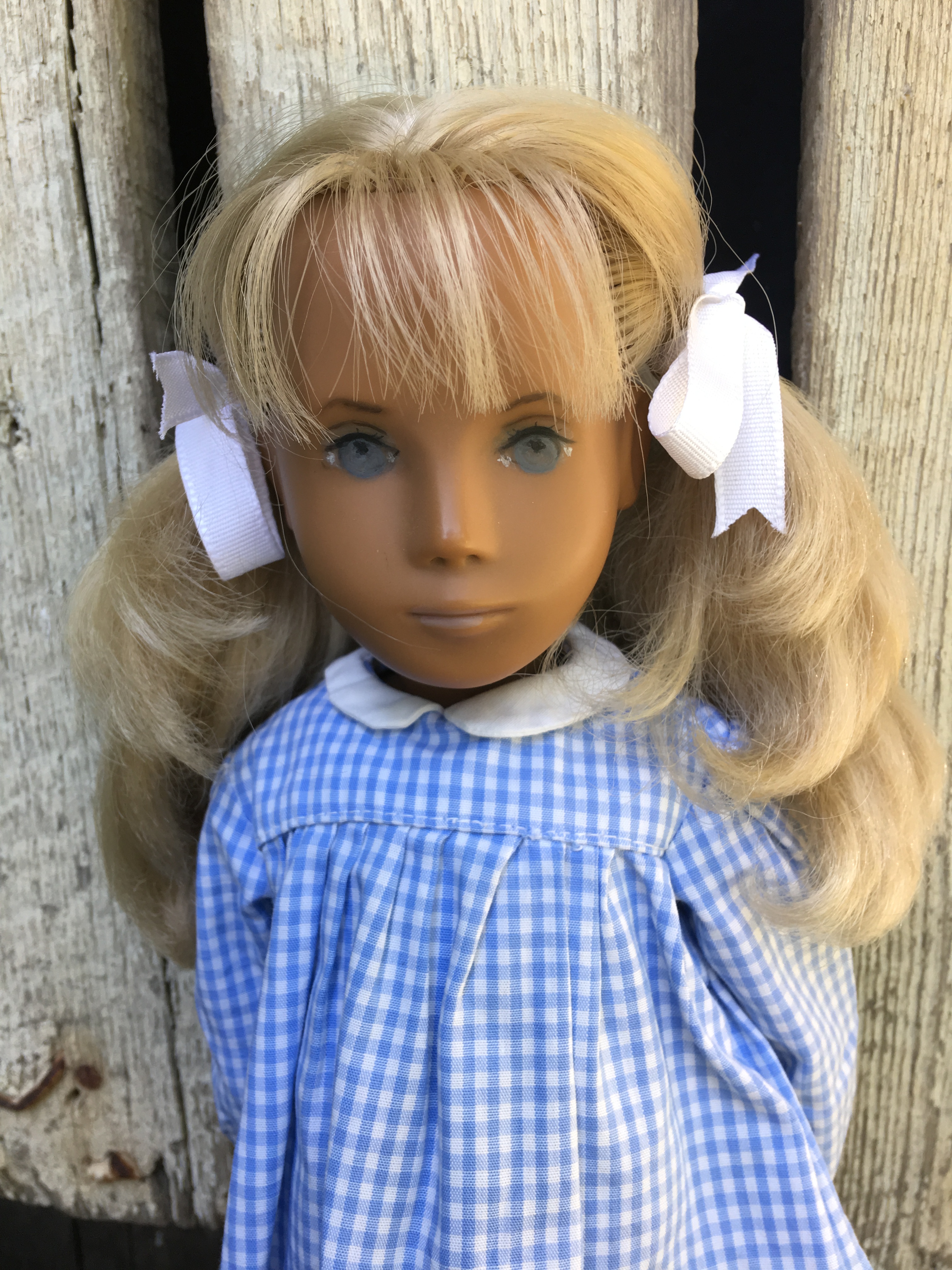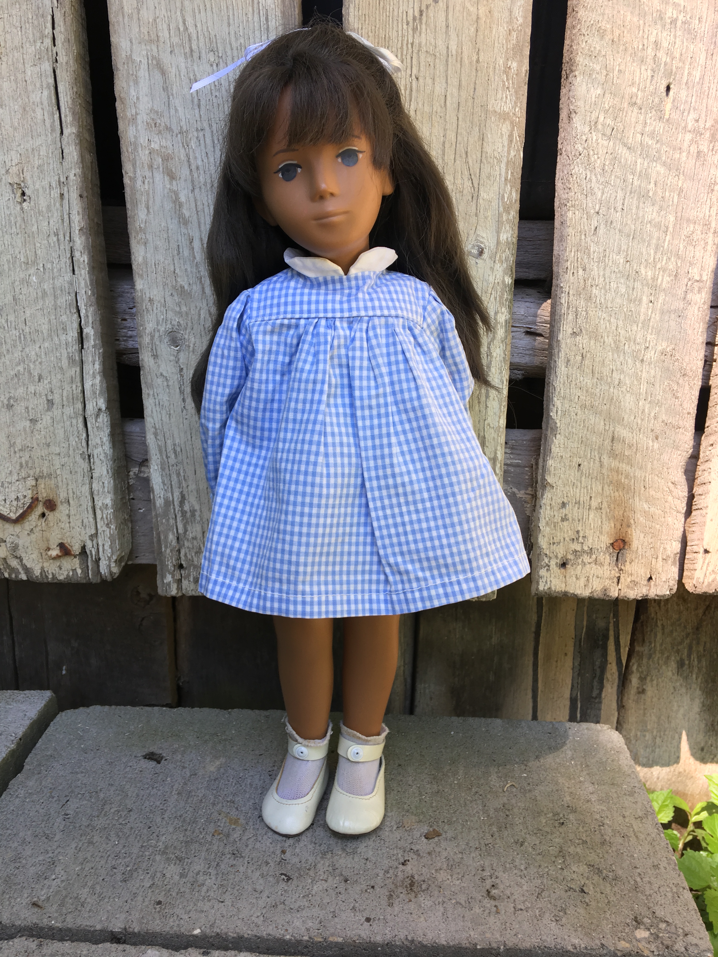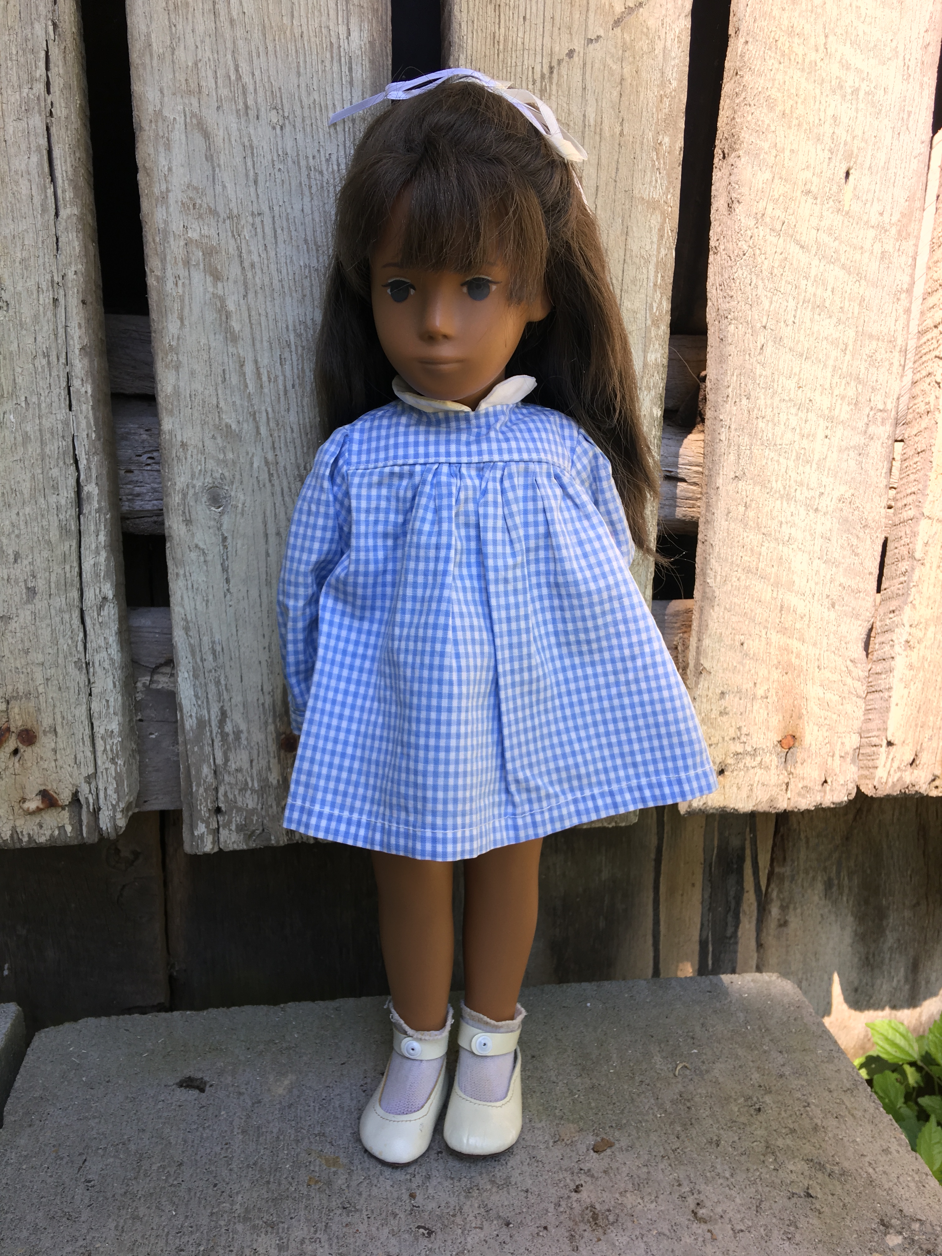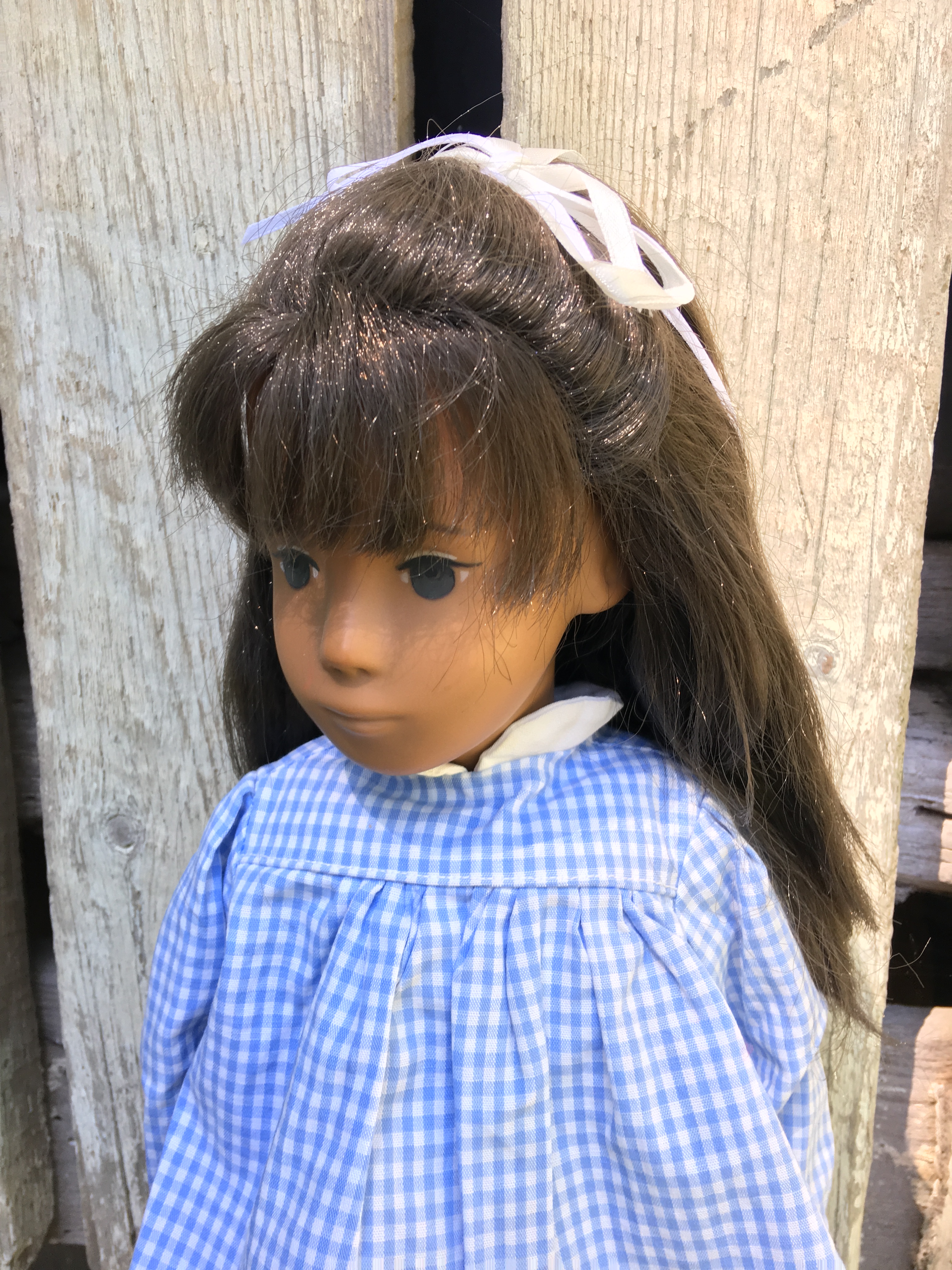Alaine came to Sasha Shangri-La in her original gingham outfit plus her original gold tag. She is a 1968 fringe girl. Here are a few photos of Alaine. I hope you like them.