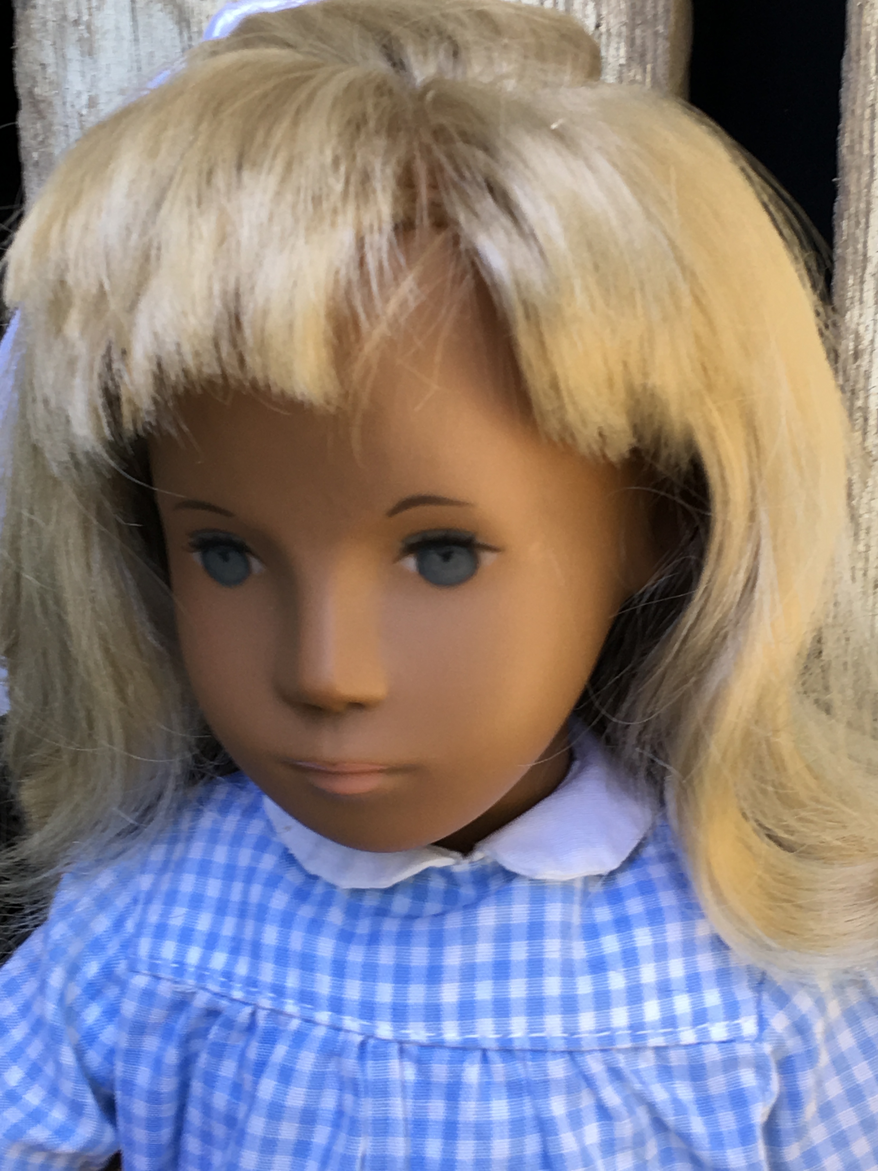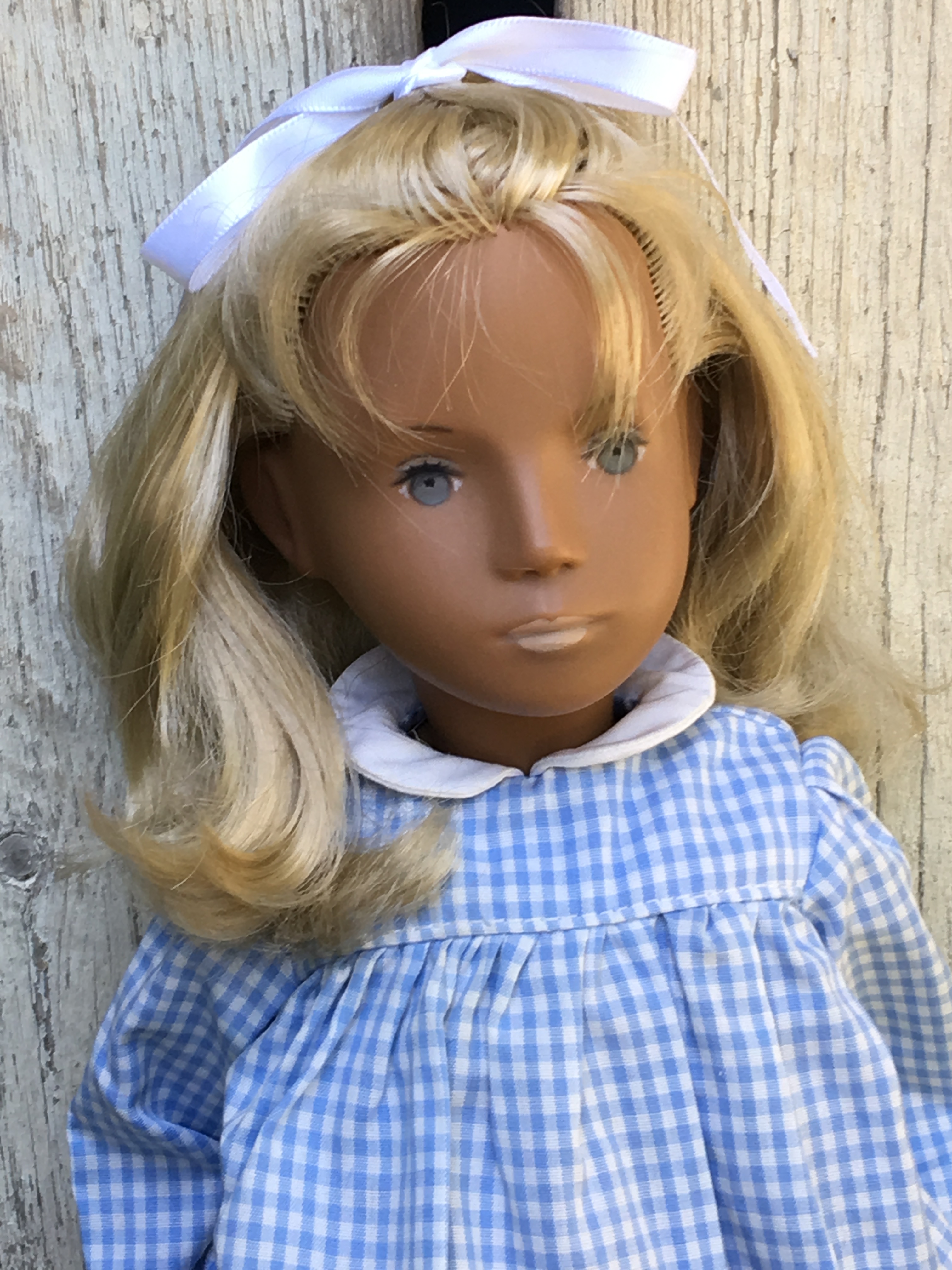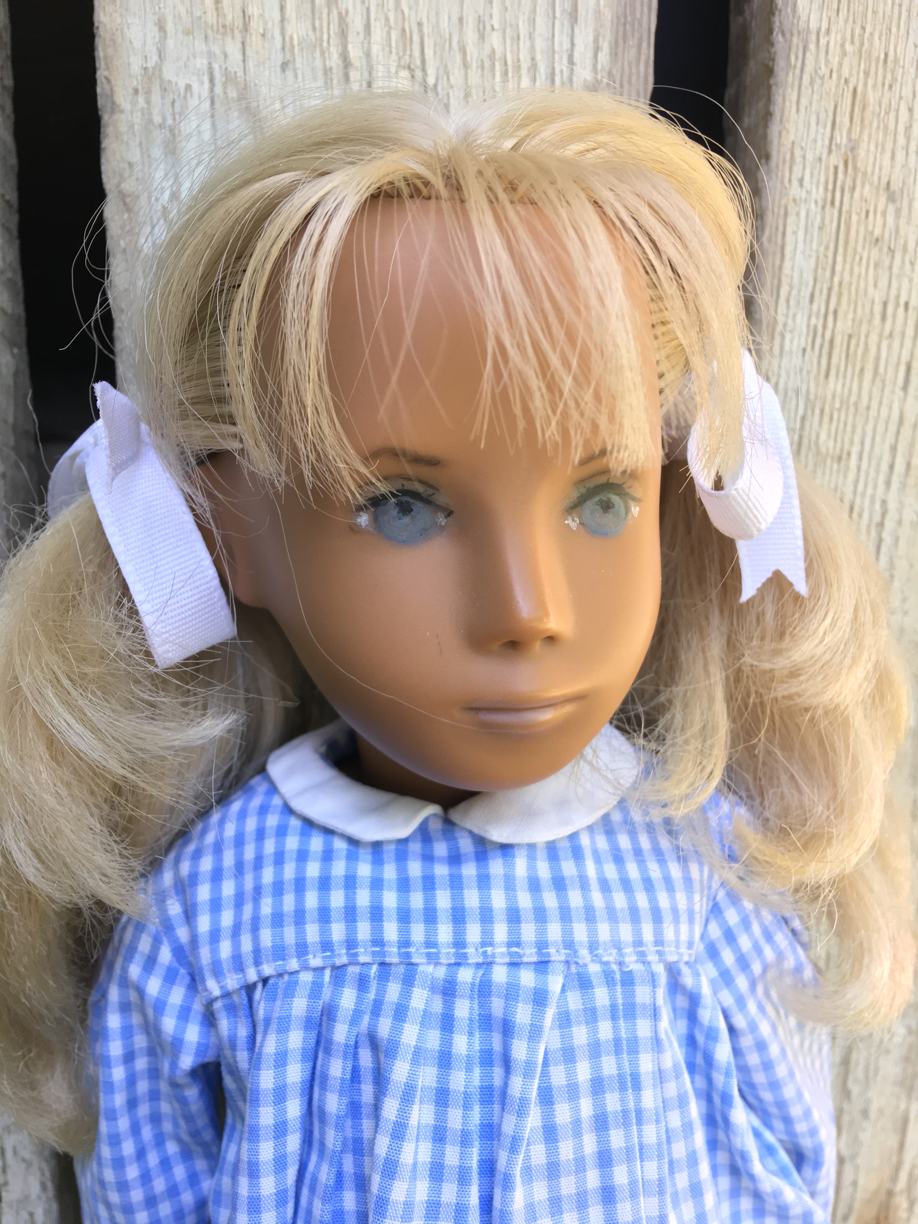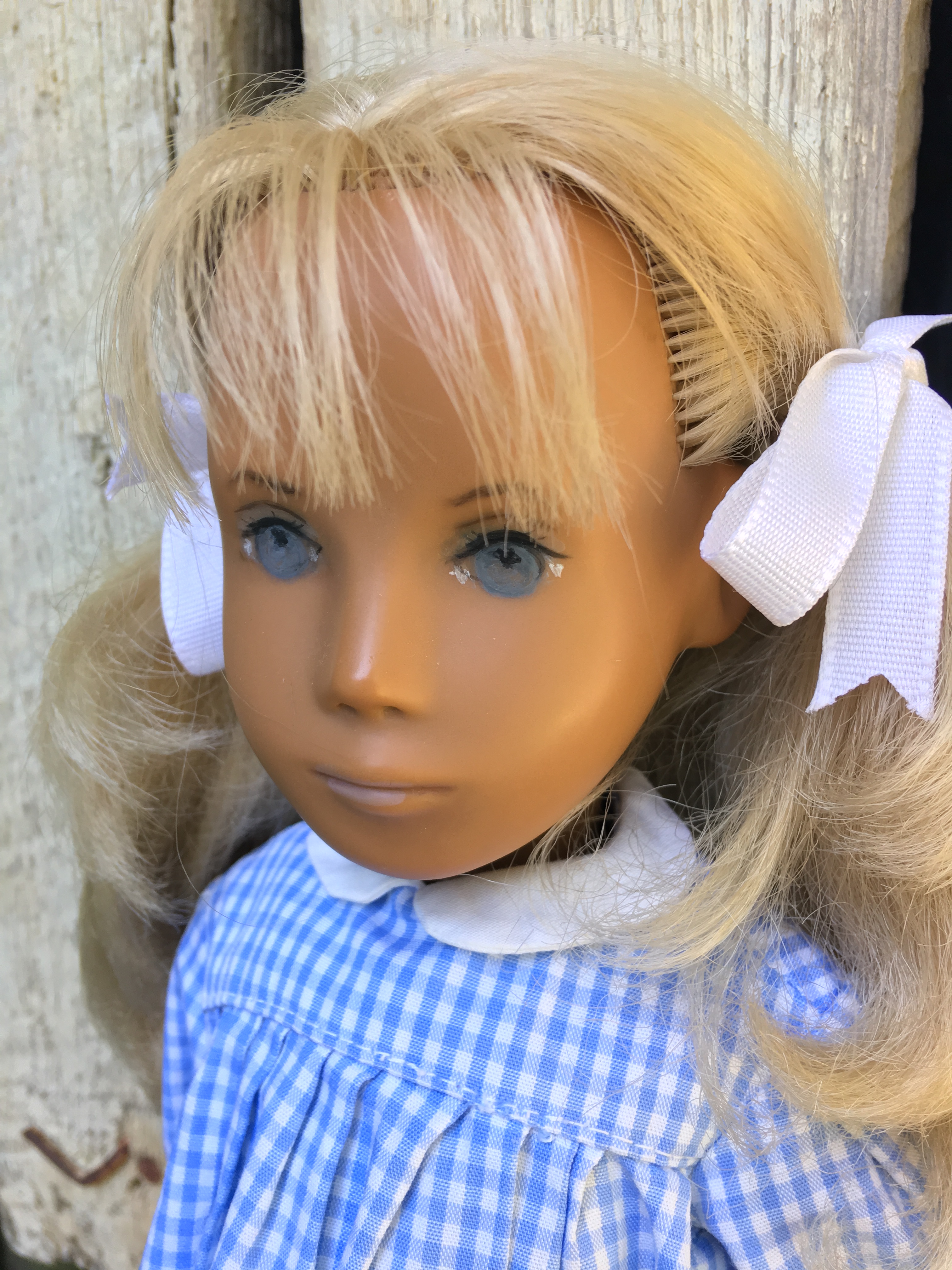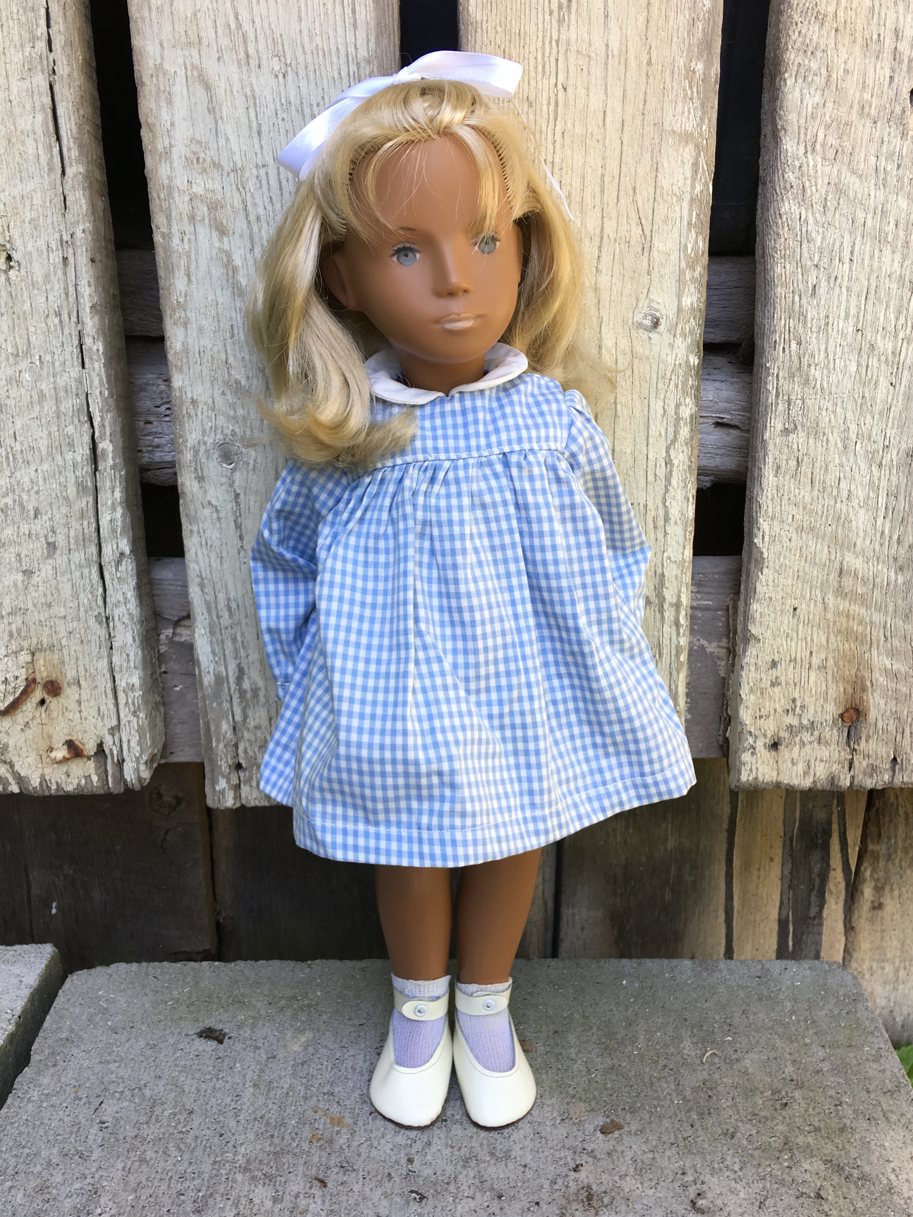 Alaine came to Sasha Shangri-La in her original gingham outfit plus her original gold tag. She is a 1968 fringe girl. Here are a few photos of Alaine. I hope you like them.