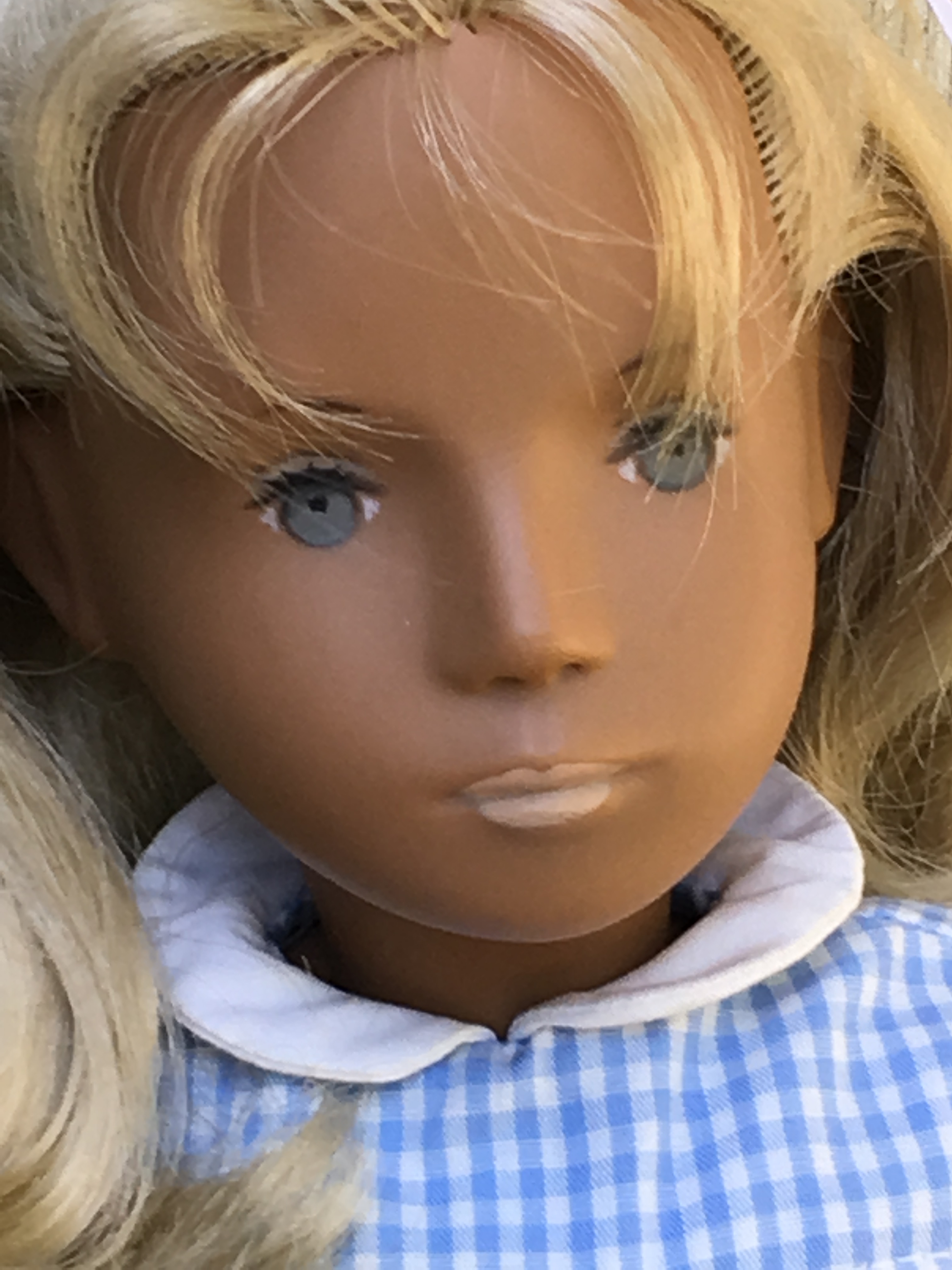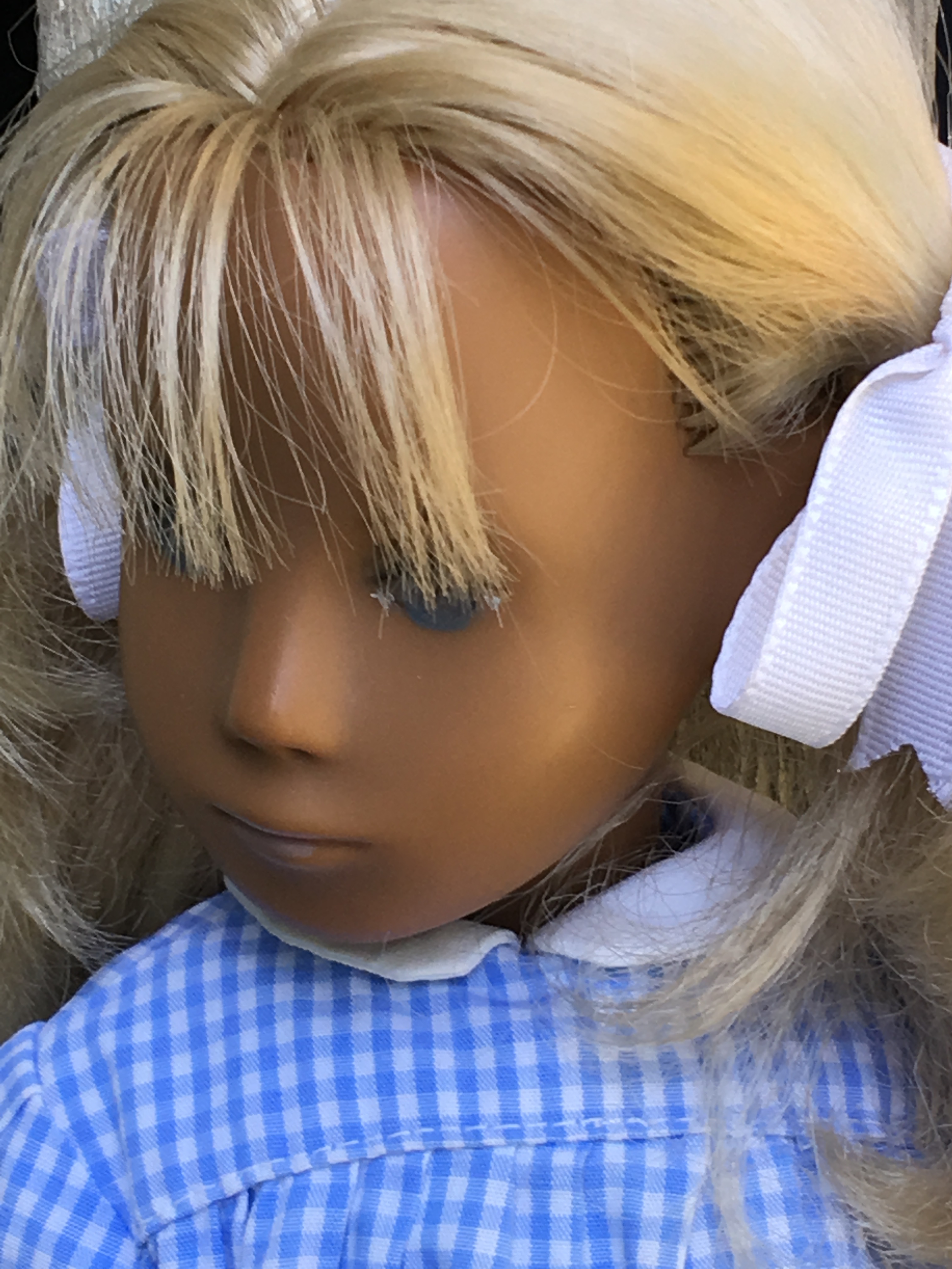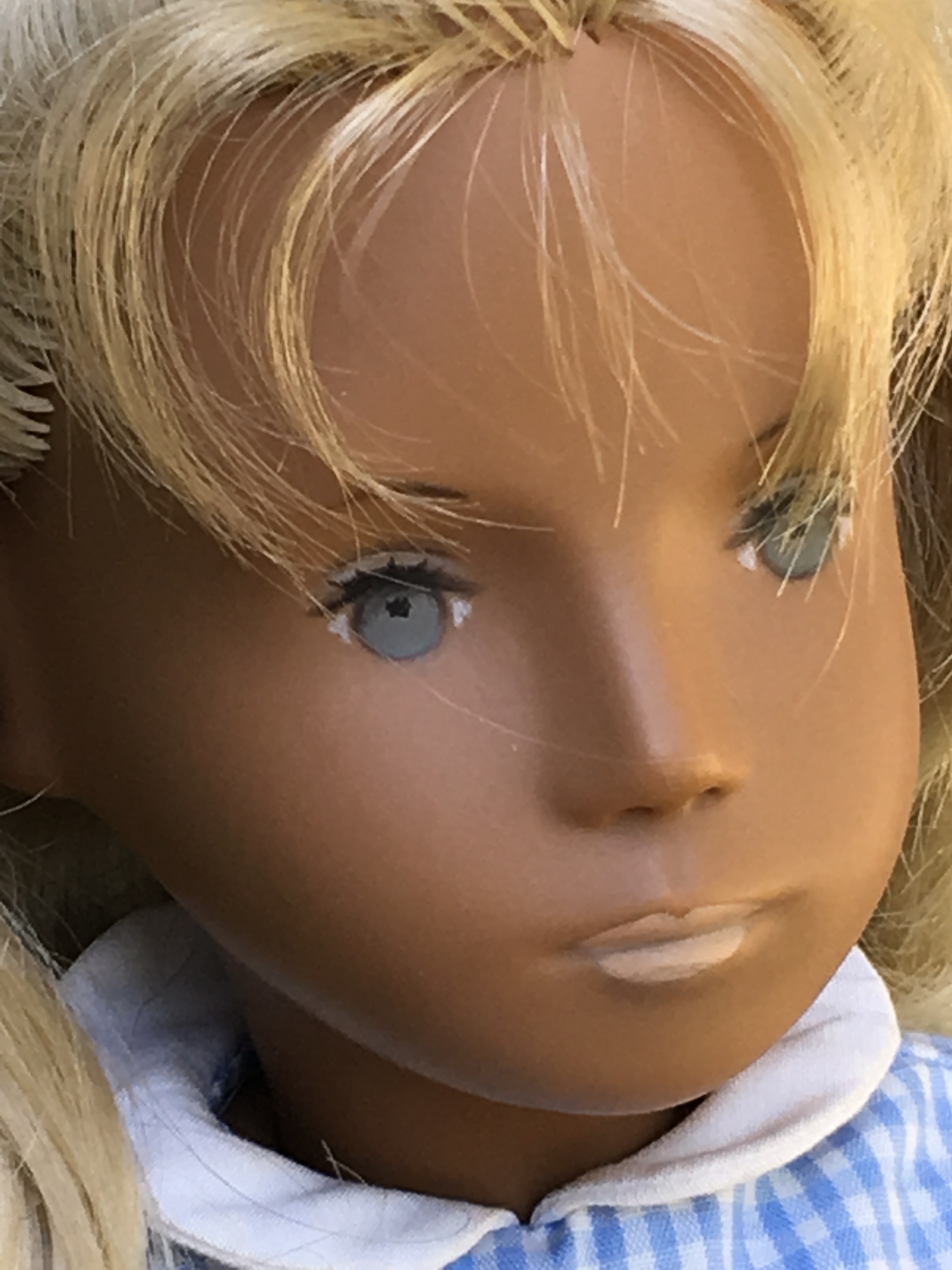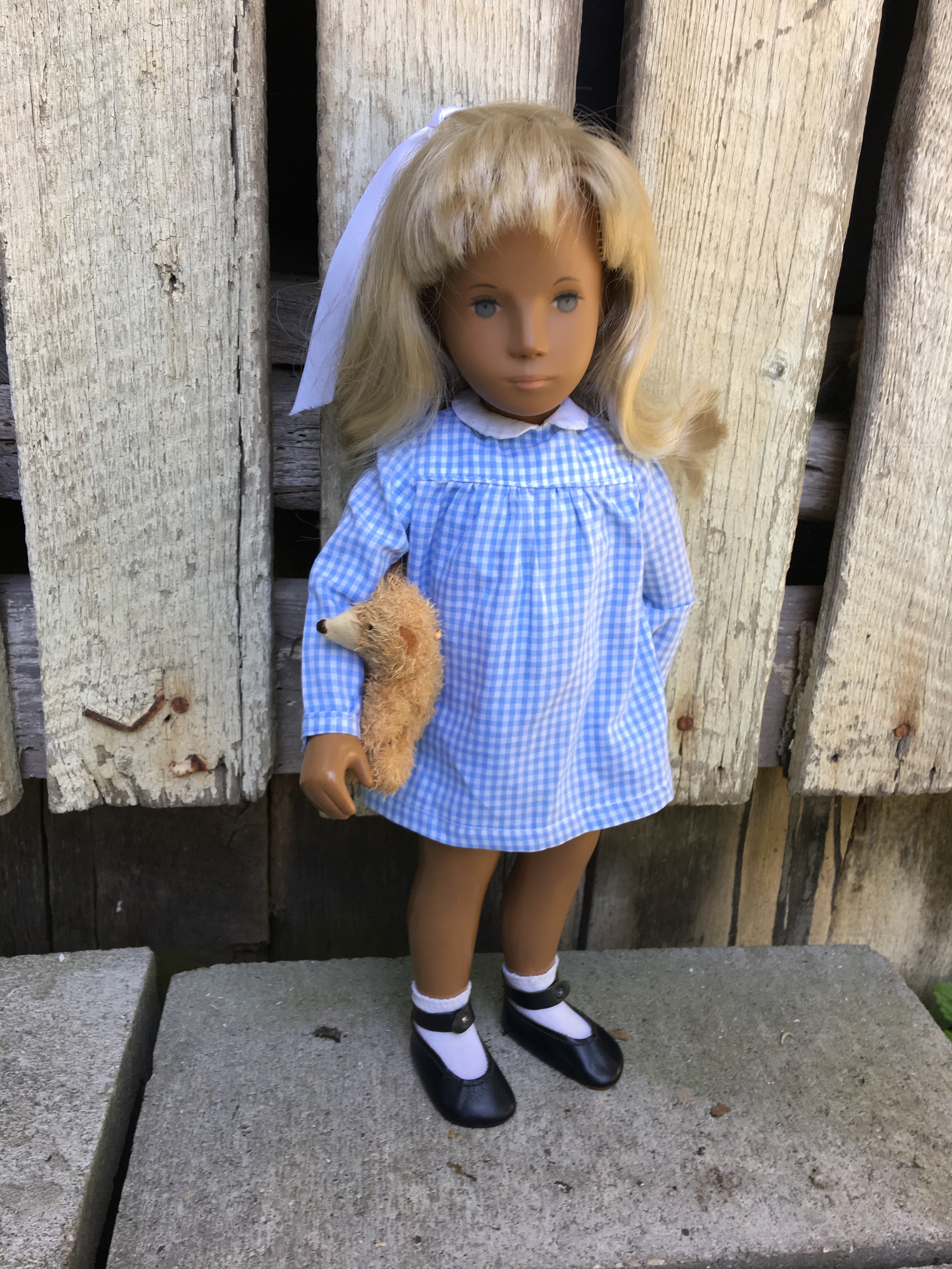 Alaine came to Sasha Shangri-La in her original gingham outfit plus her original gold tag. She is a 1968 fringe girl. Here are a few photos of Alaine. I hope you like them.