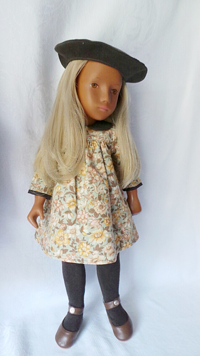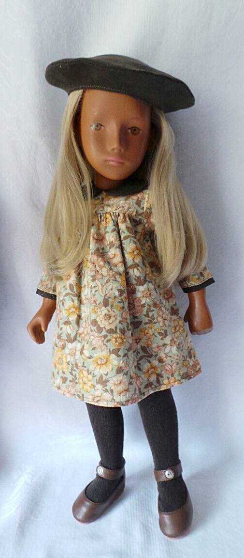 Finally, a beautiful, sunny day!  Our first girl is Morgen, a 1960’s Gotz factory ponytail girl that was repainted by Sasha Morgenthaler herself. Morgen is wearing a new beautiful dress made for her by Fanny Boiten.  I love the fabrics that Fanny used and the generous fullness of the dress.