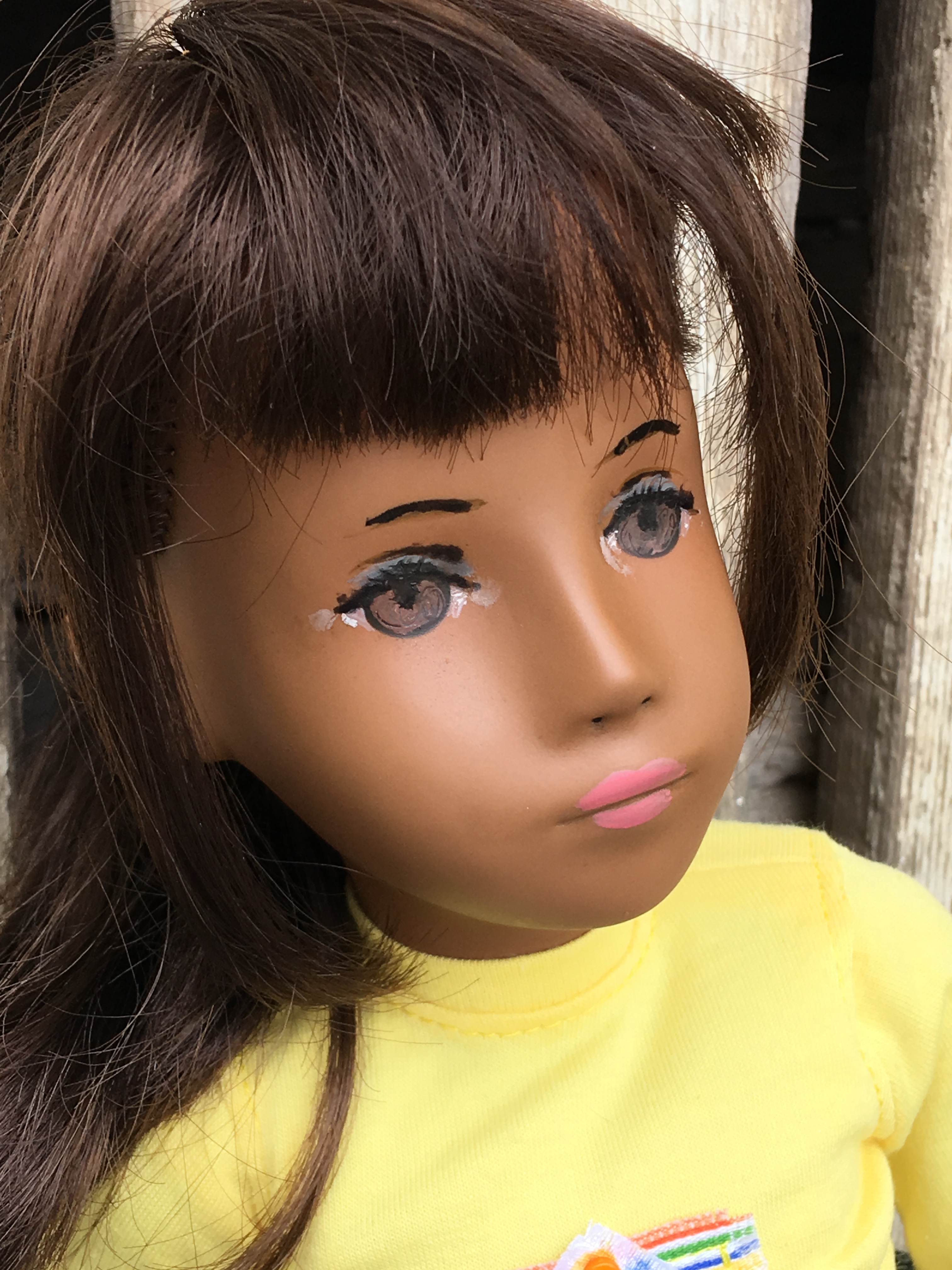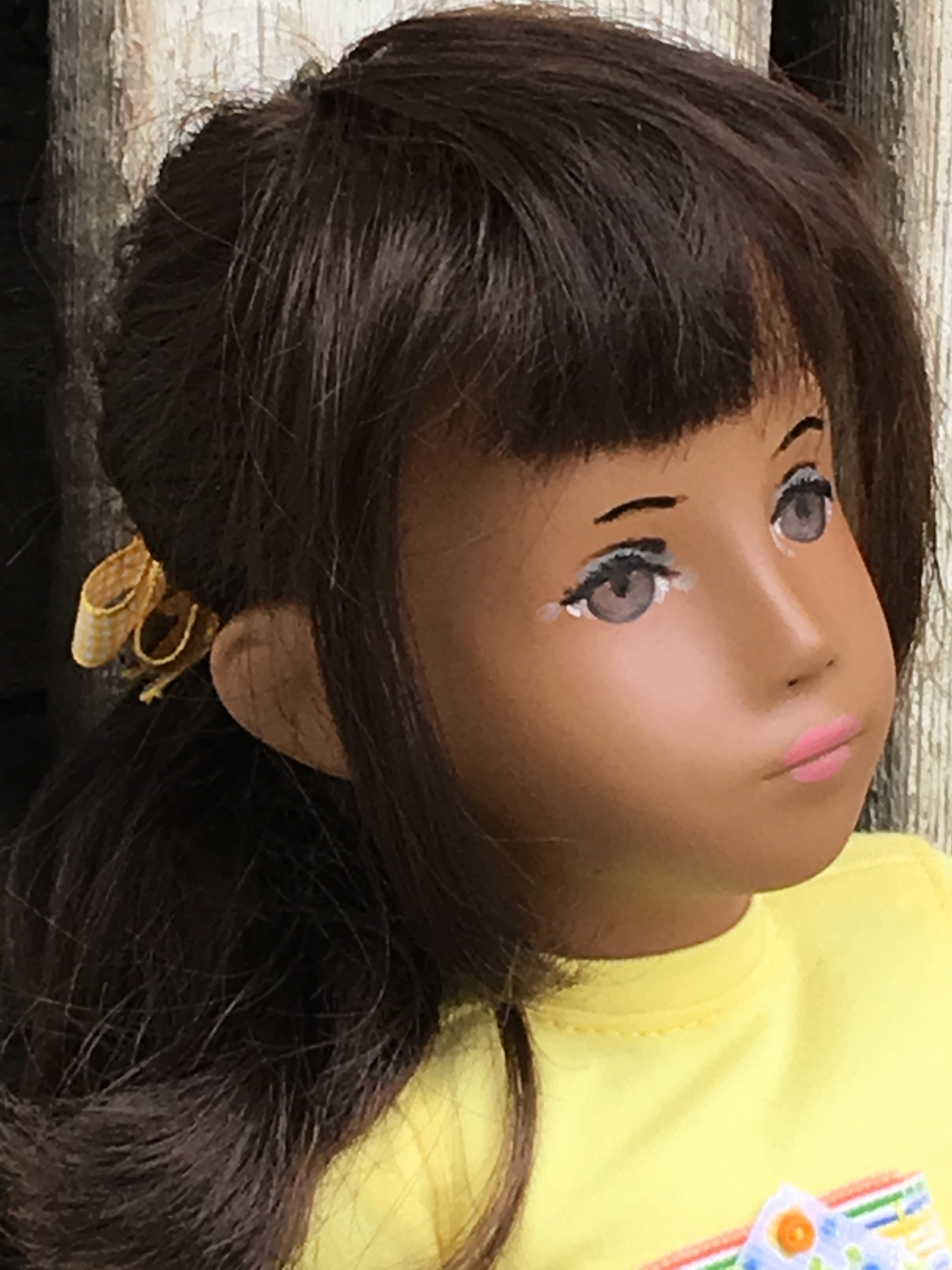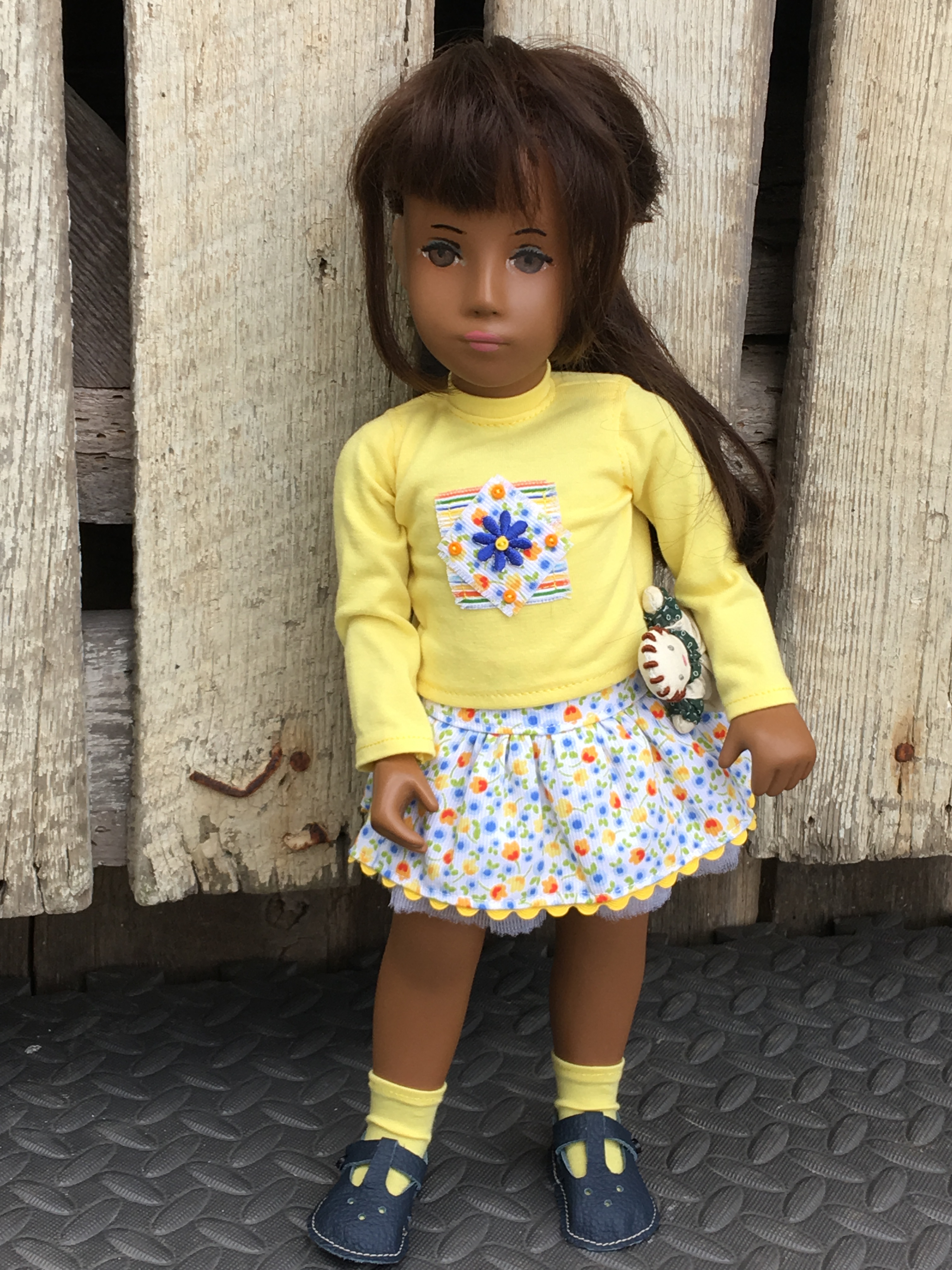 A sweet girl in her apron and sandals. You can see the rick rack trim on her undergarment that is typically seen on Sasha’s undergarments.