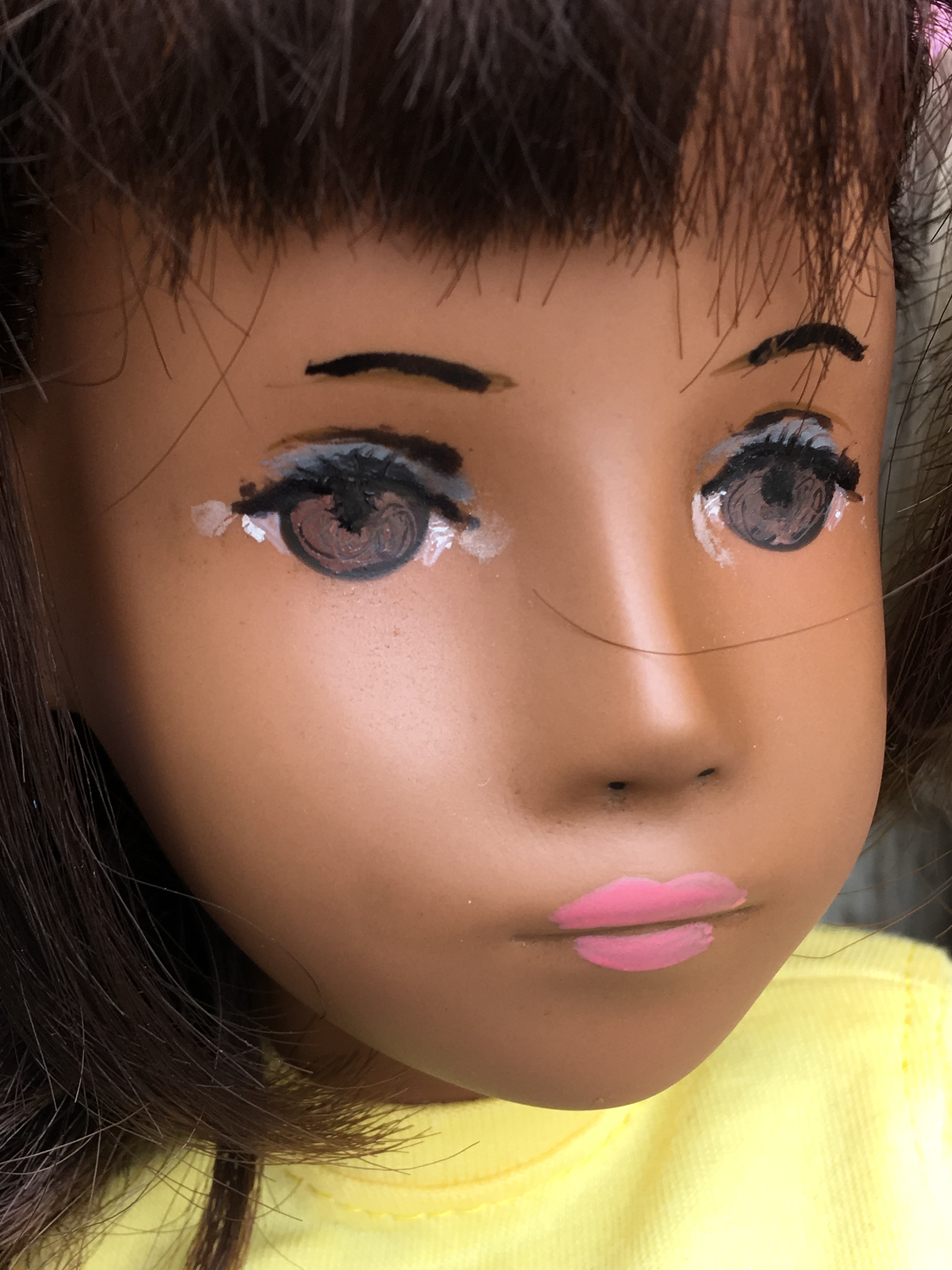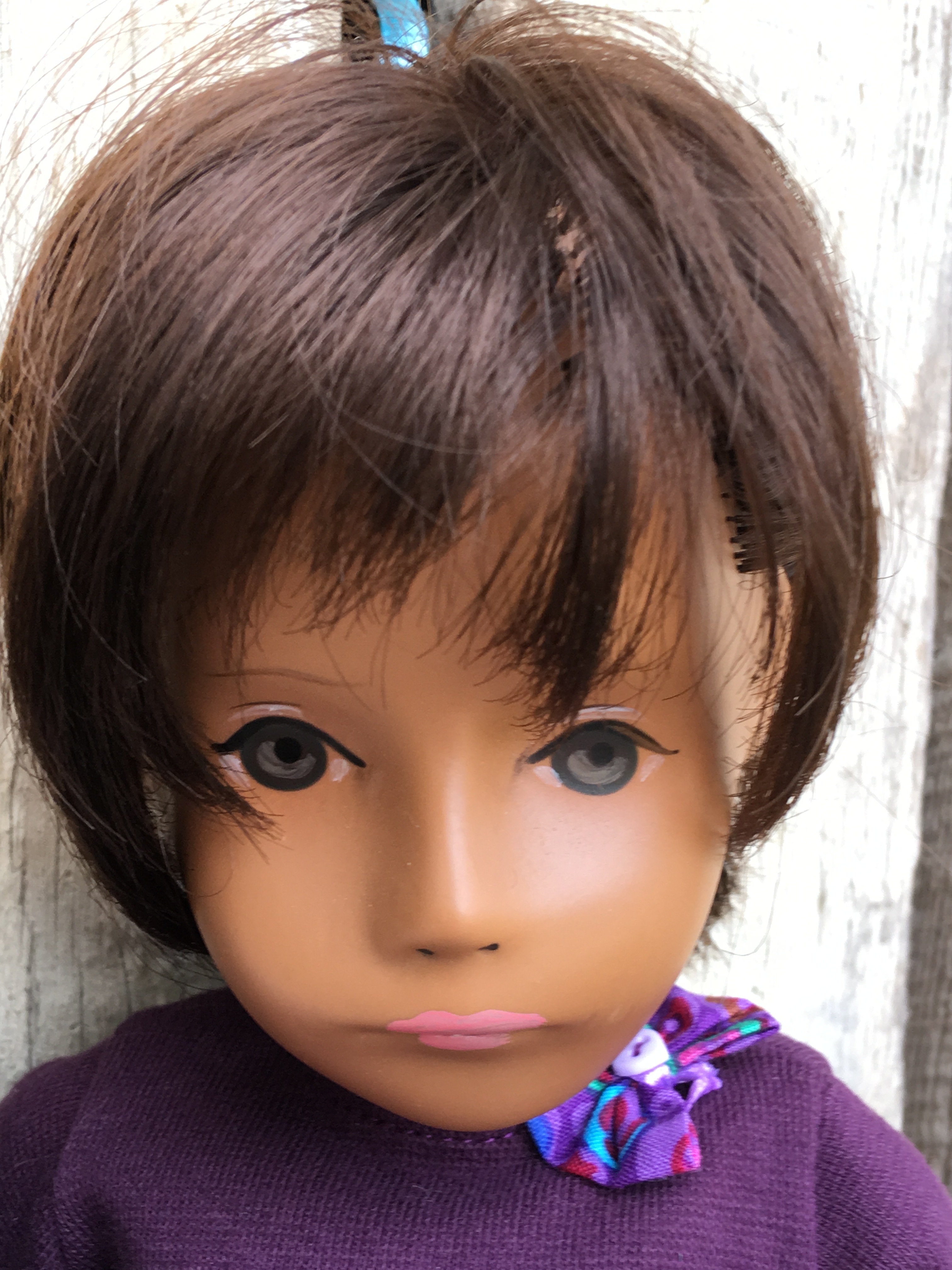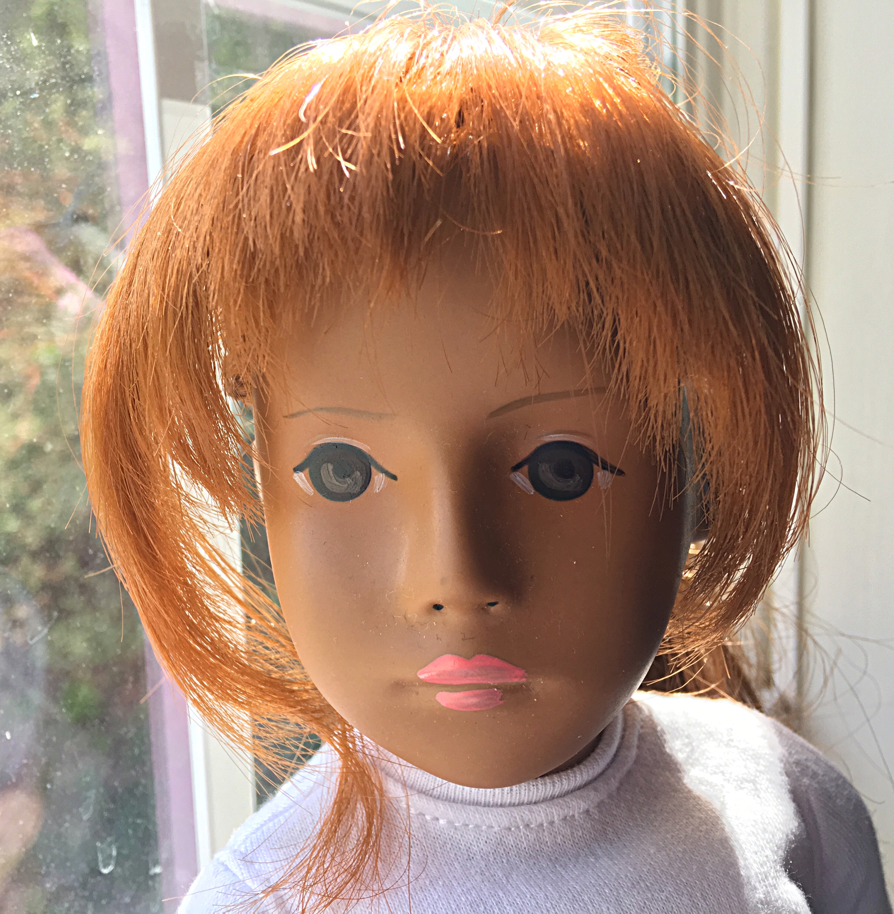 A beautiful head painted by Sasha and would be an A-I studio doll if joined to the proper body. Such beautiful painting on this tricot covered mold and lovely red hemp wig.