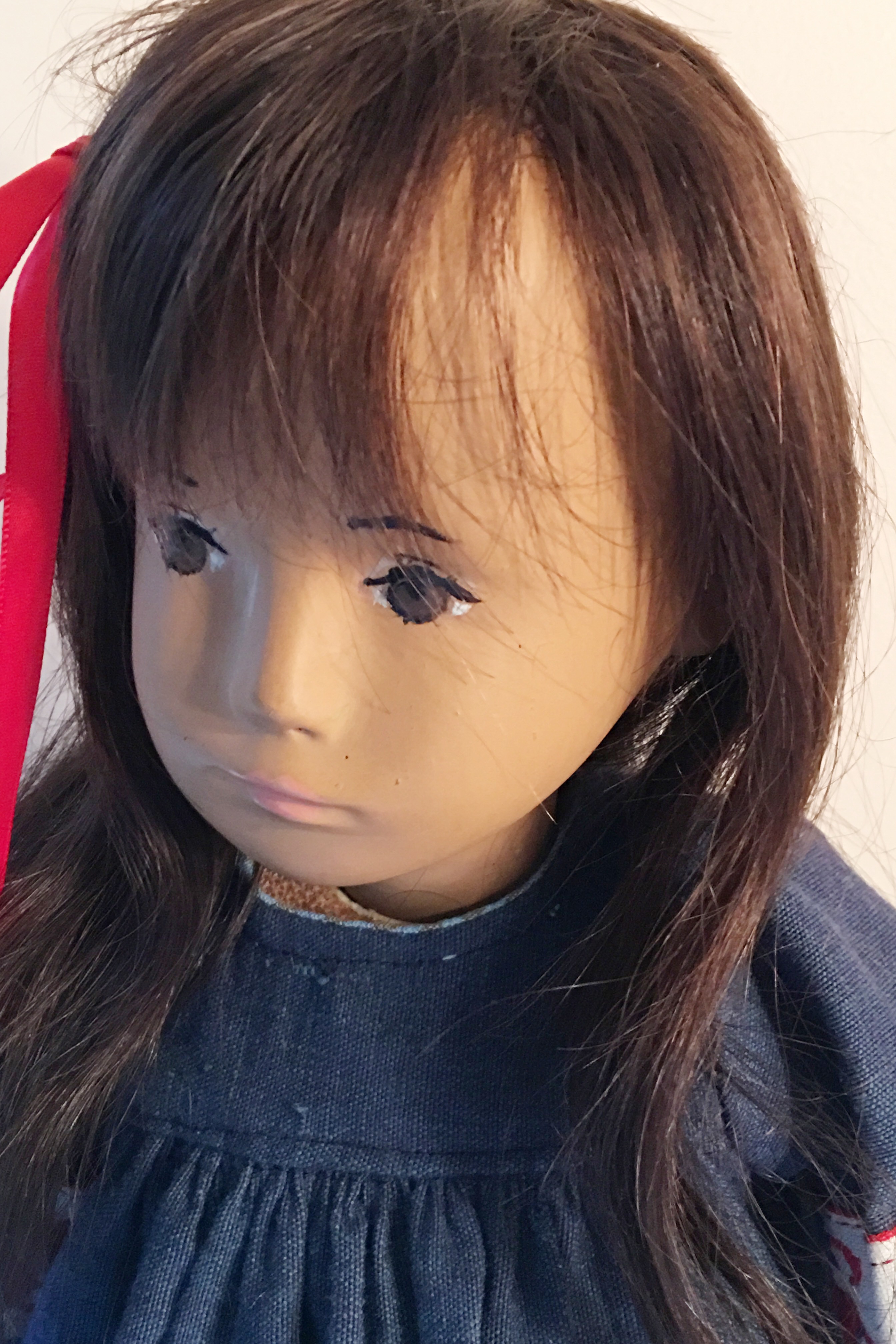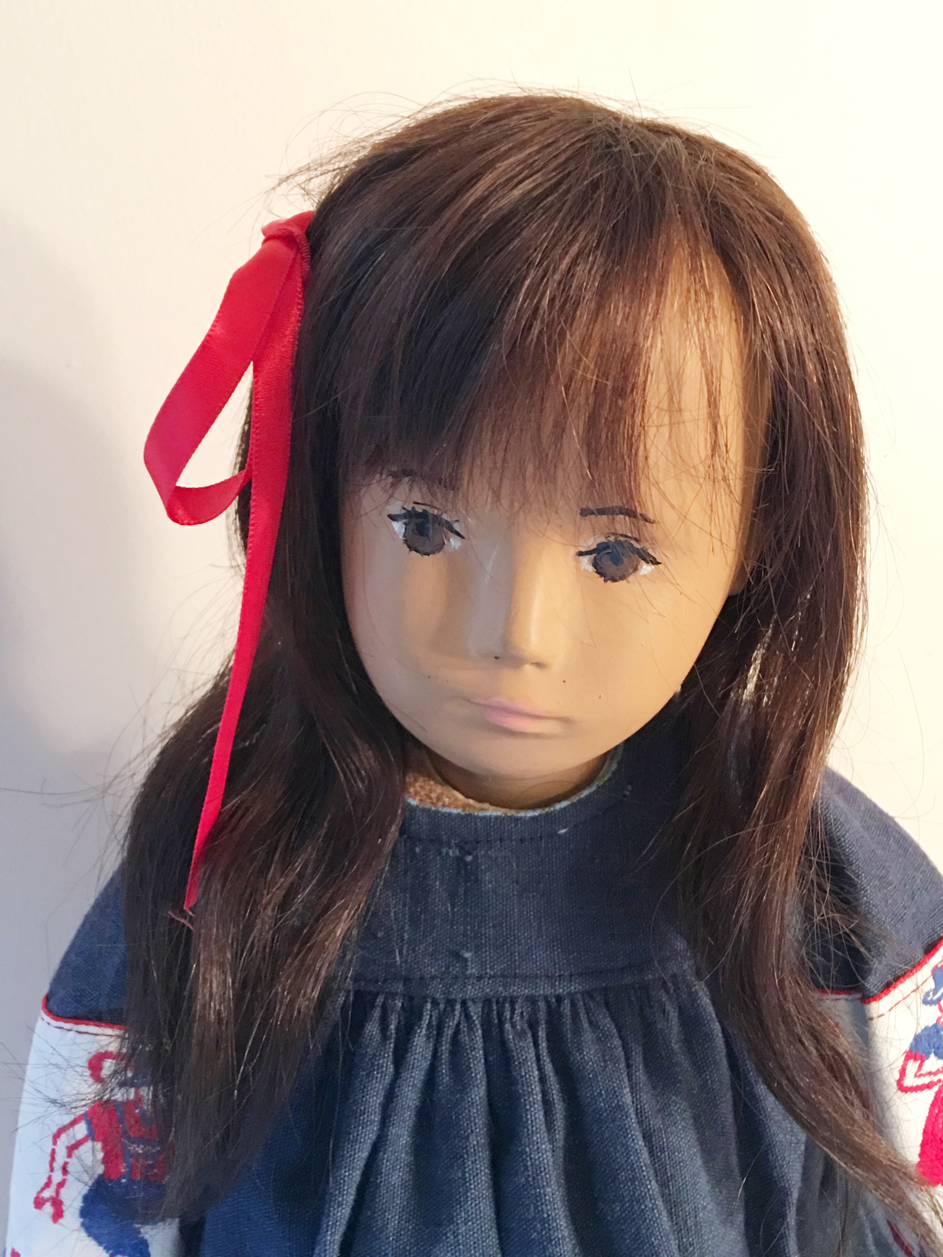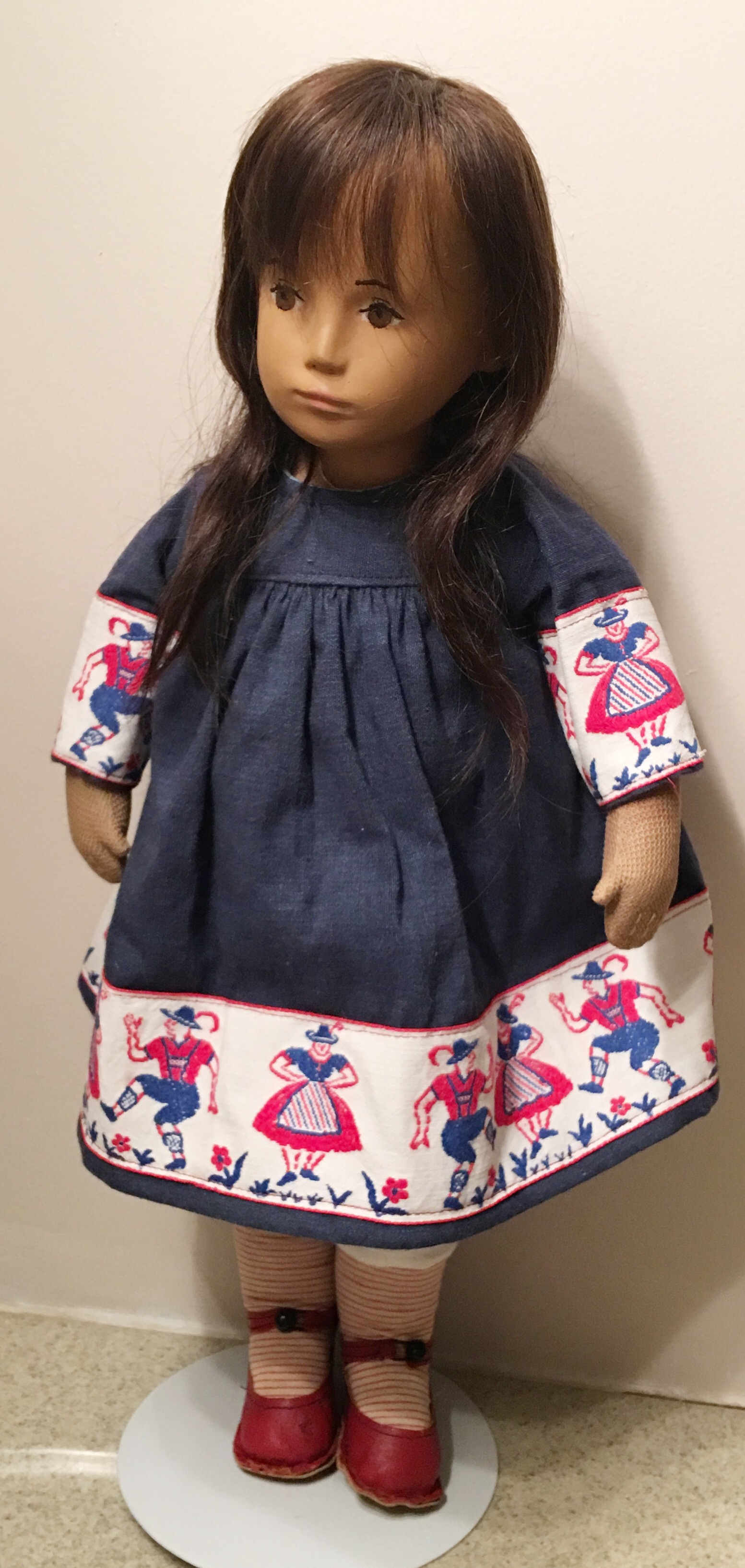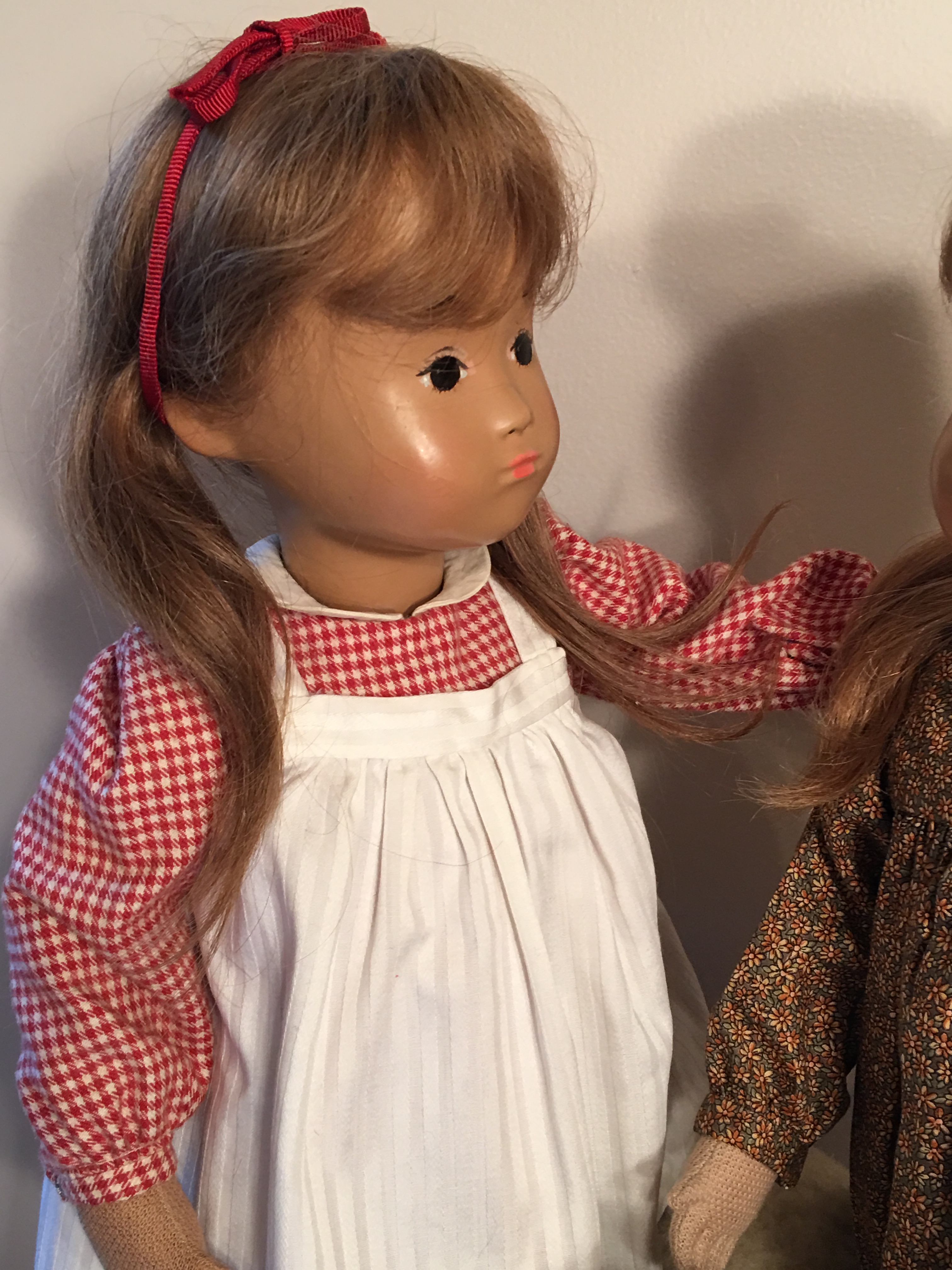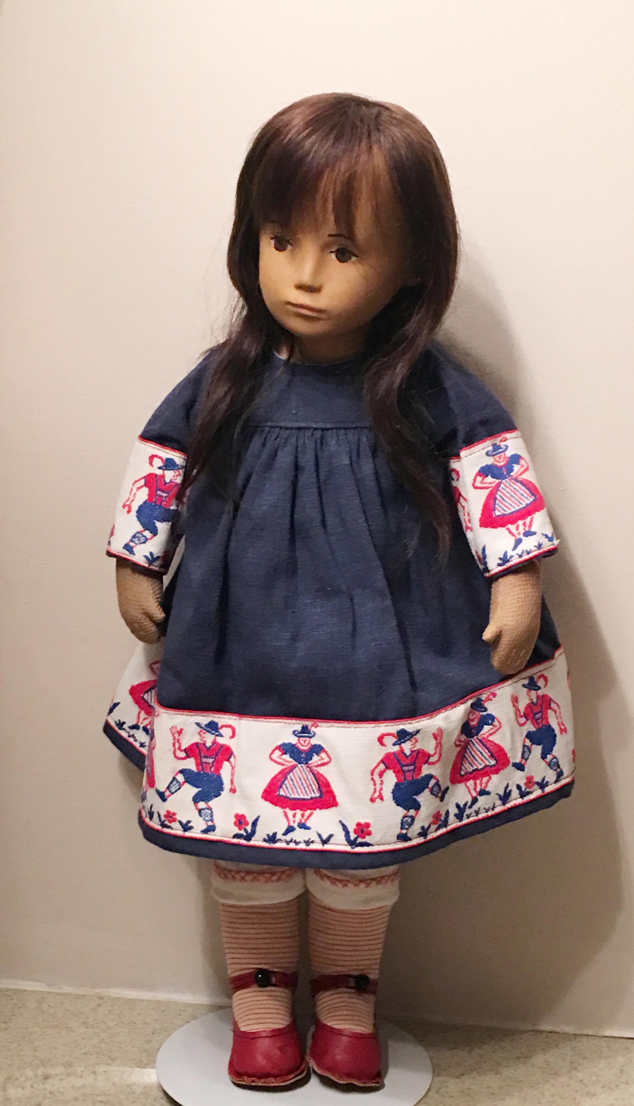 I would like to introduce the first arrival and newest addition to the Sasha Shangri-La family for 2019. Her name is Beatrice and we call her Bea. Bea is a BII Sasha studio doll. B means her body is made of cloth and II is her face mold number. Bea had been redressed when she arrived and so I dressed her in this beautiful Ruth’s dolls outfit and added a childhood, scarab bar pin.