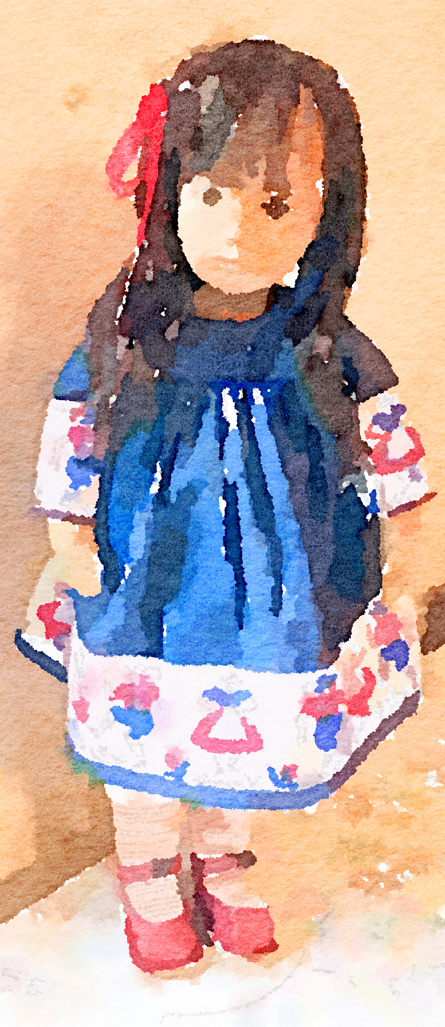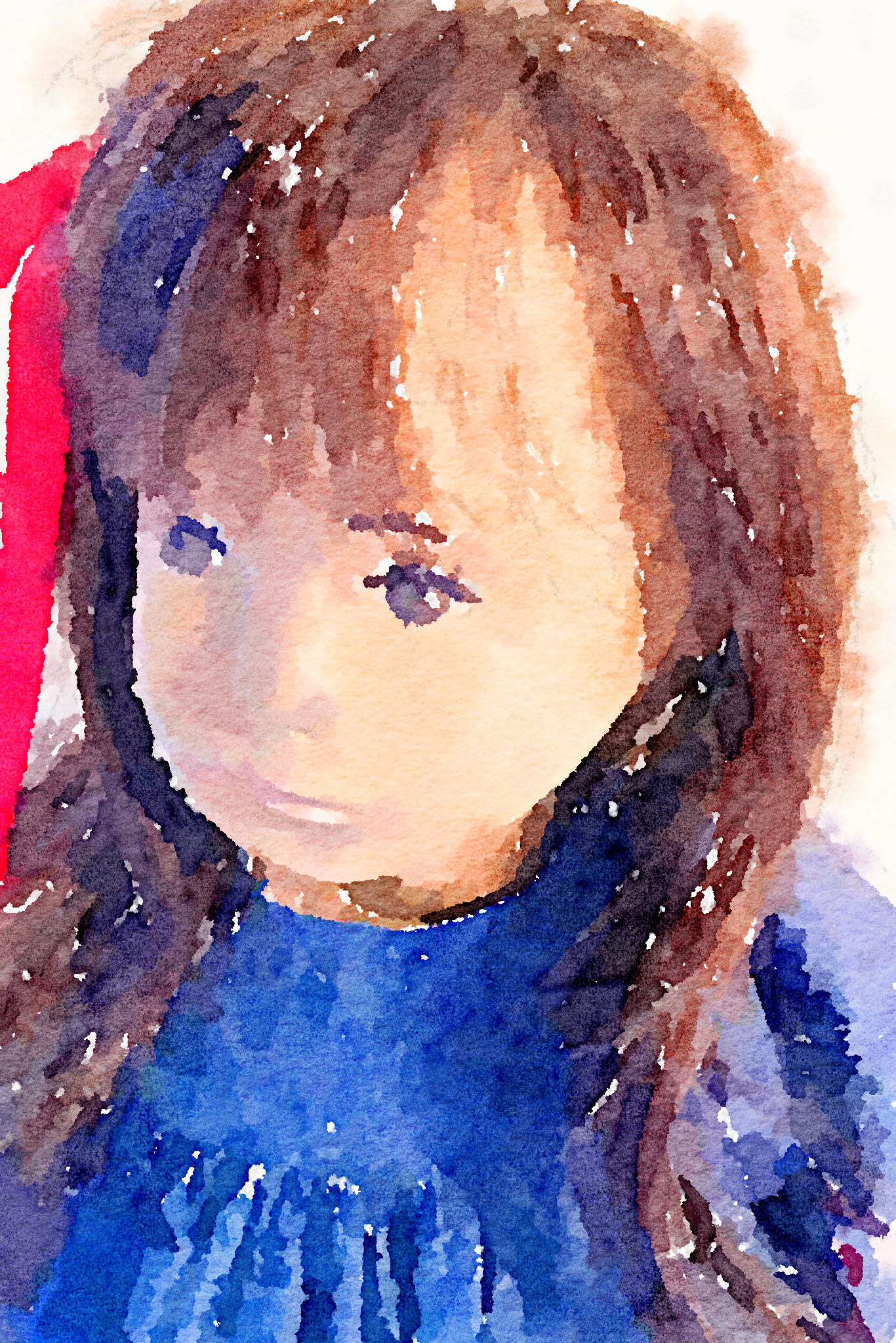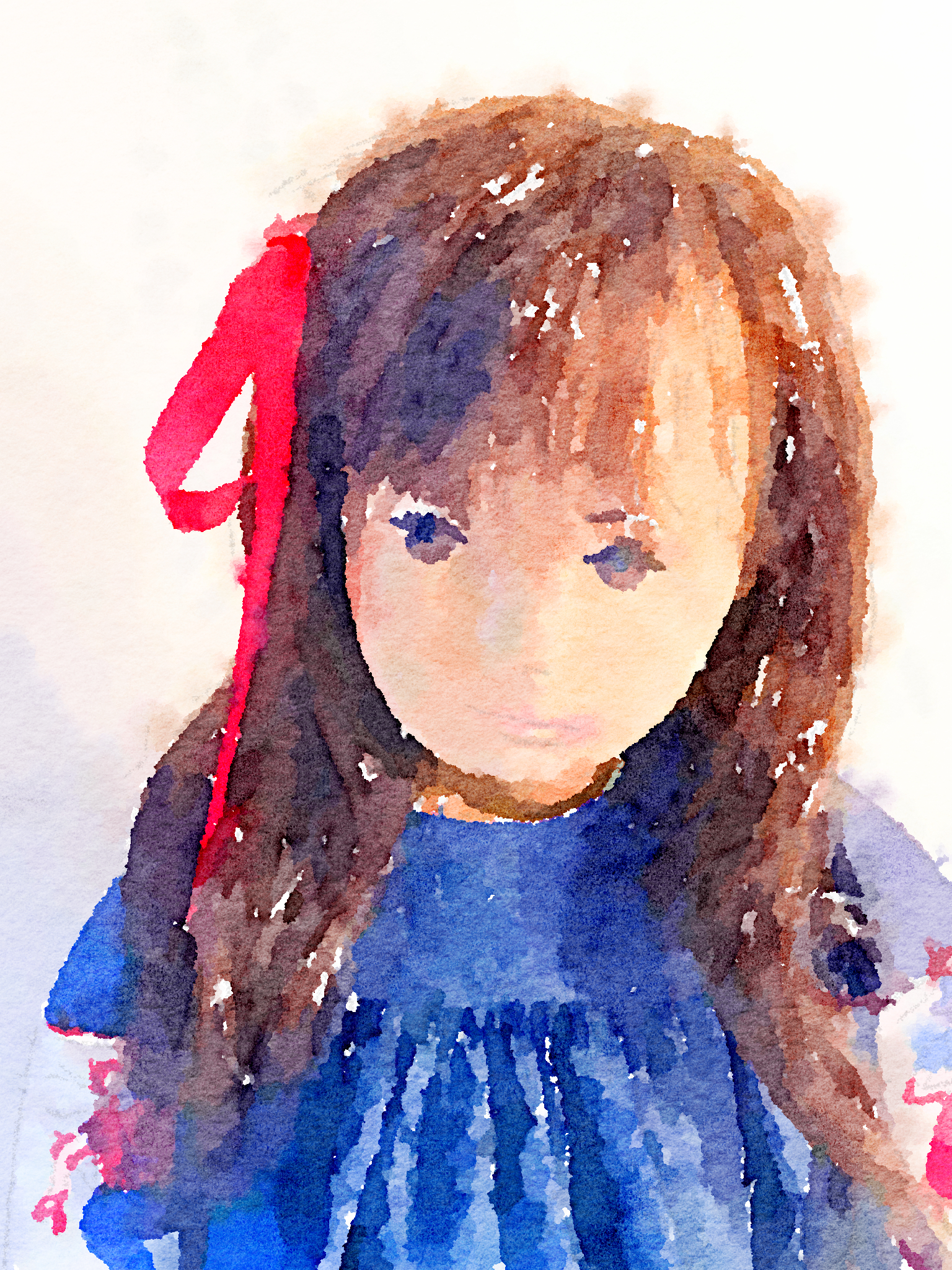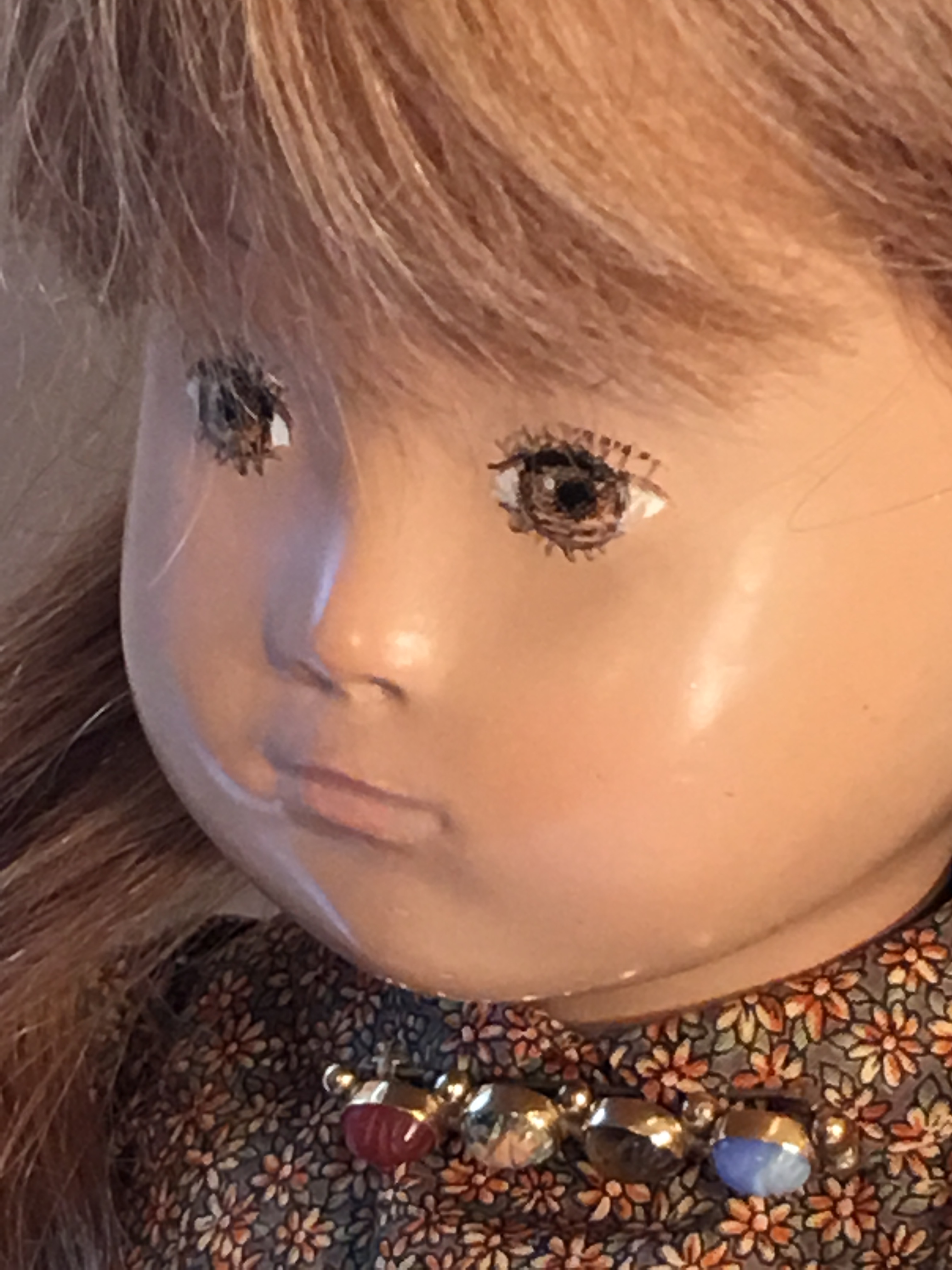 This is another photo showing better her painting in both eyes. Please look at Bea’s eyes up close to see the textured background. I think it gives her eyes depth and interest.