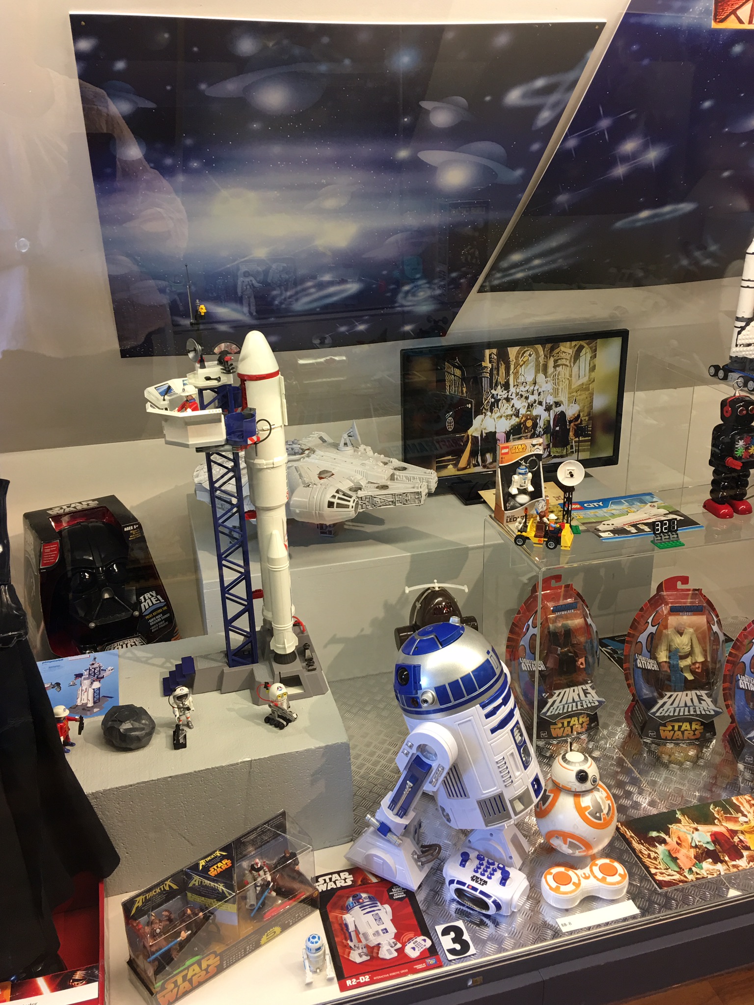Upstairs the displays continue of space toys and familiar toys to include Star Wars.