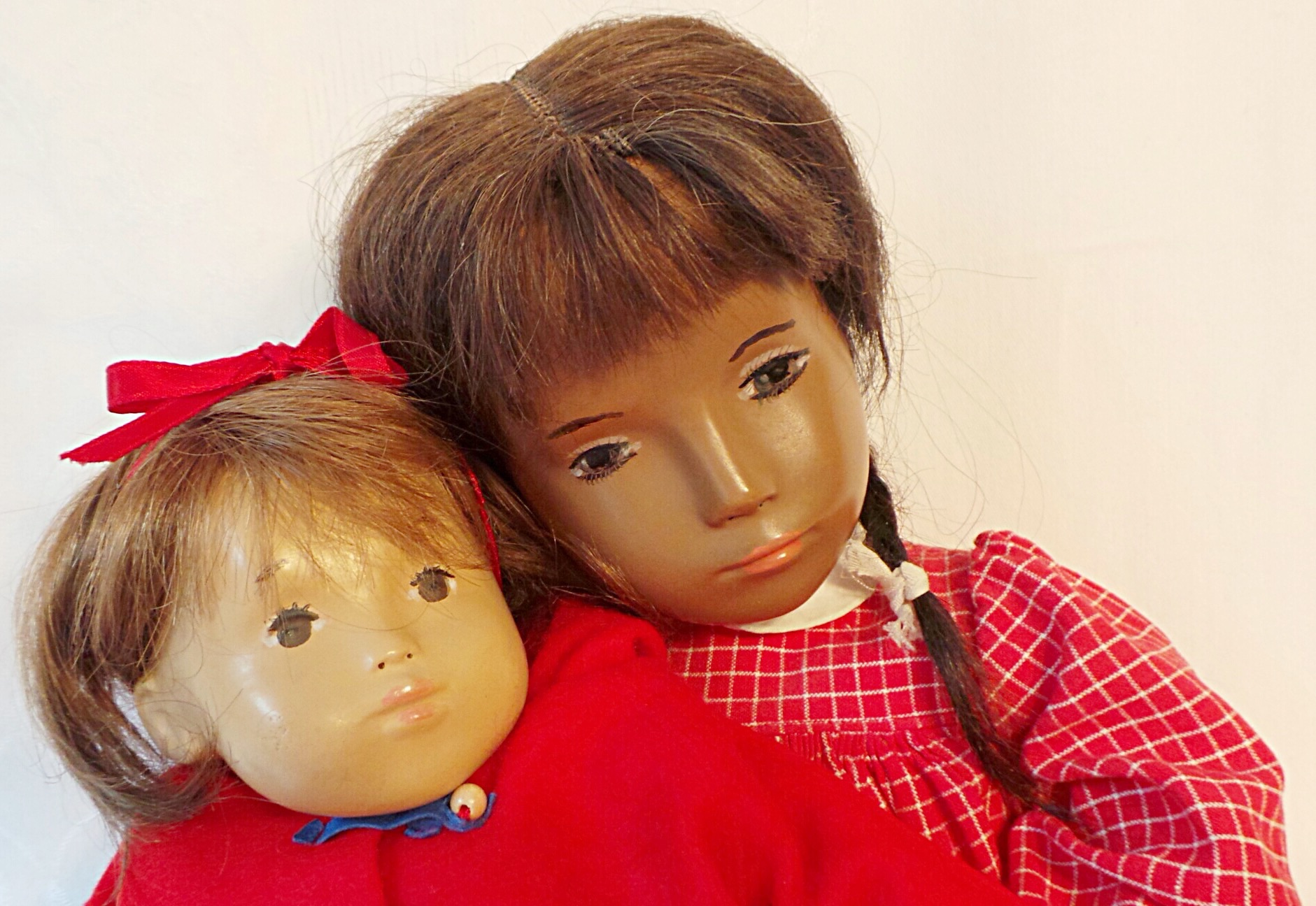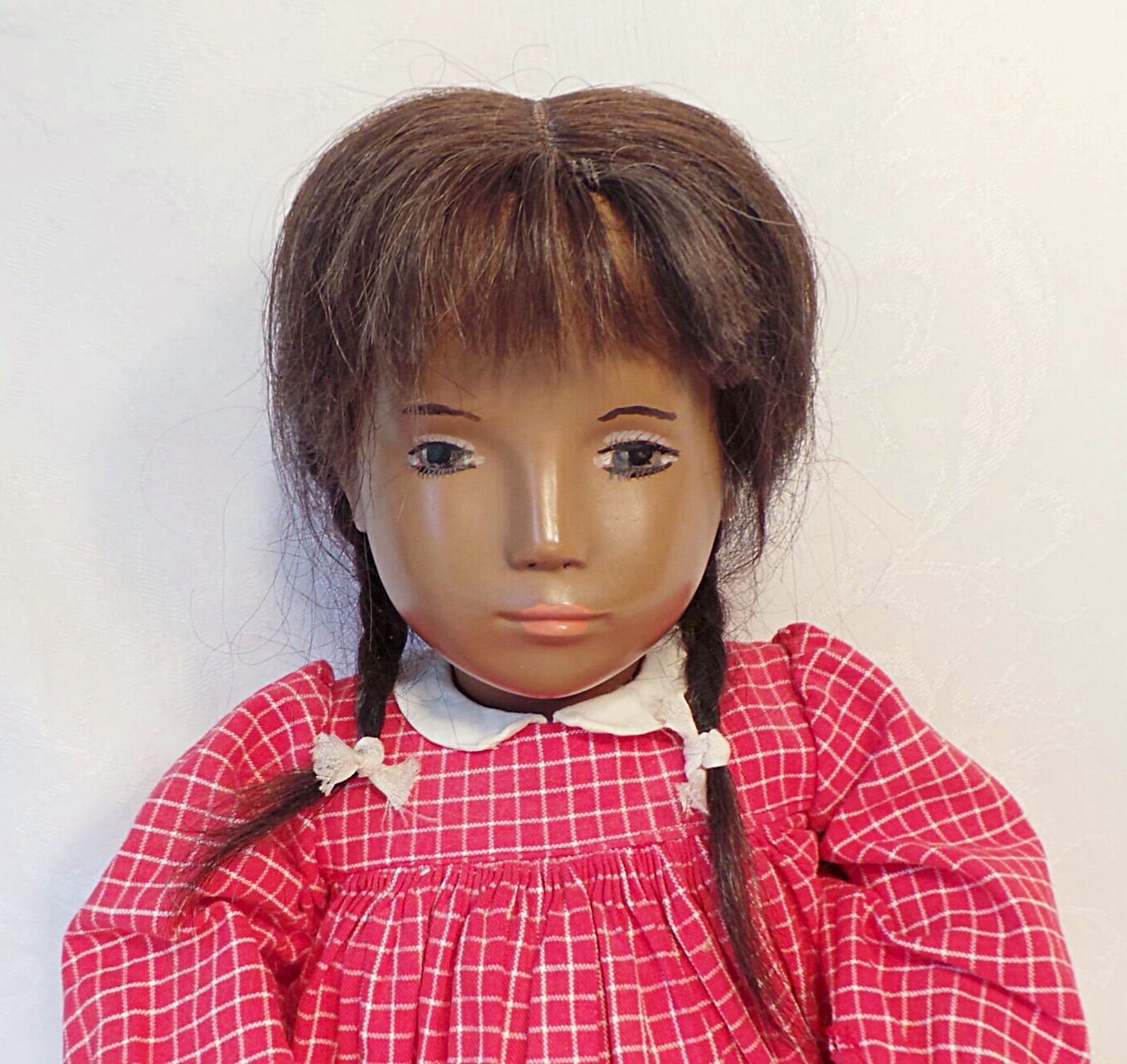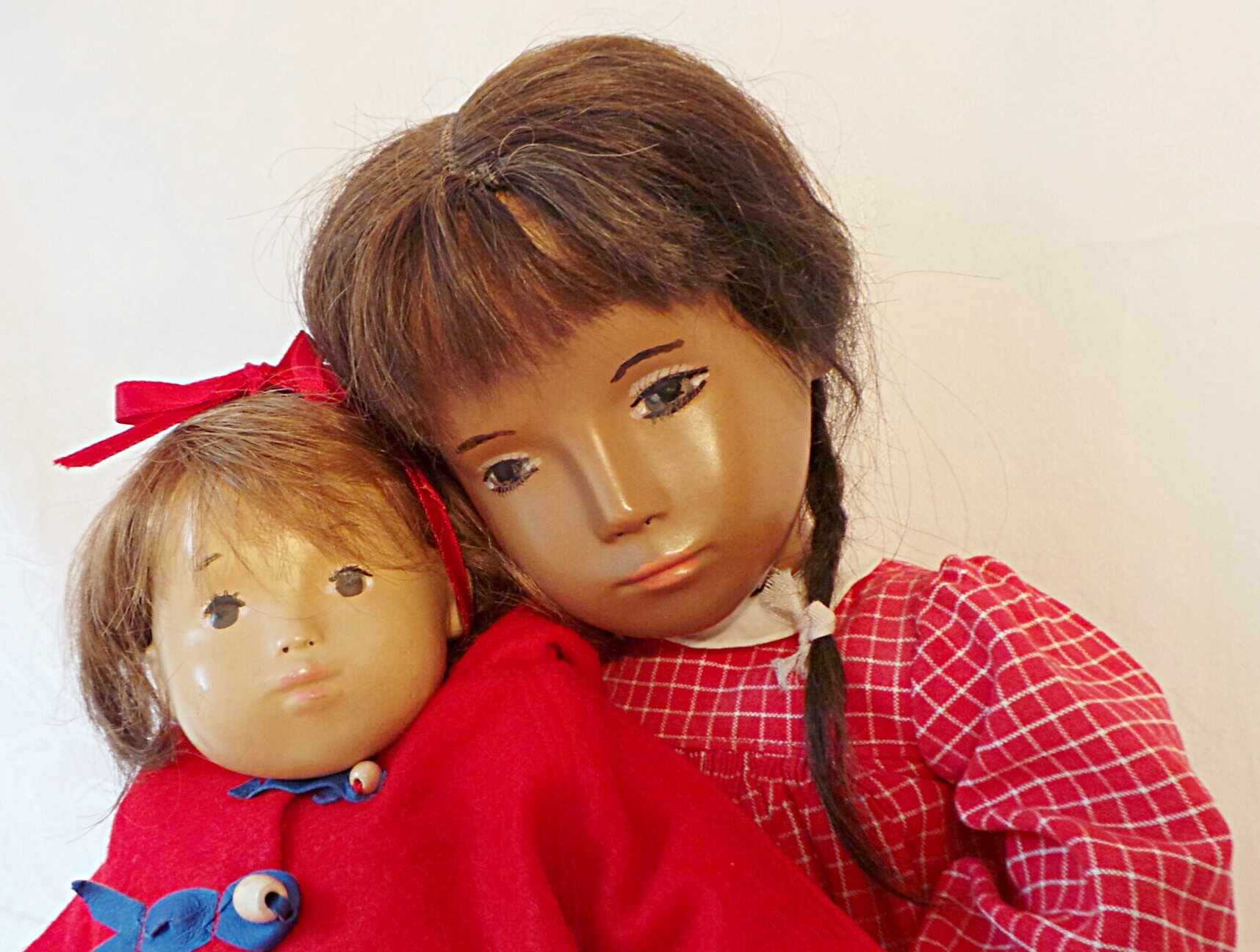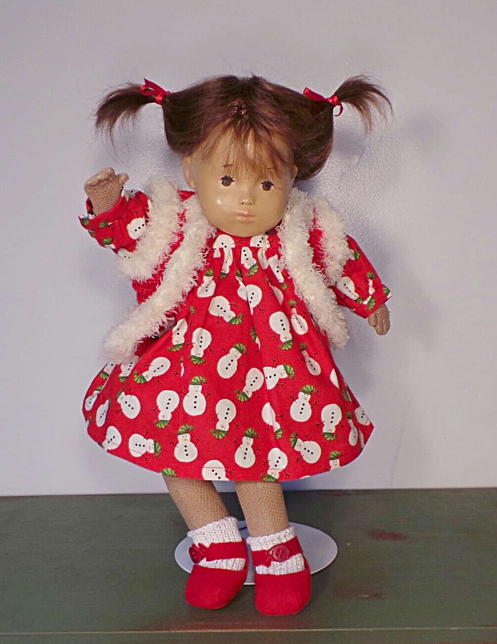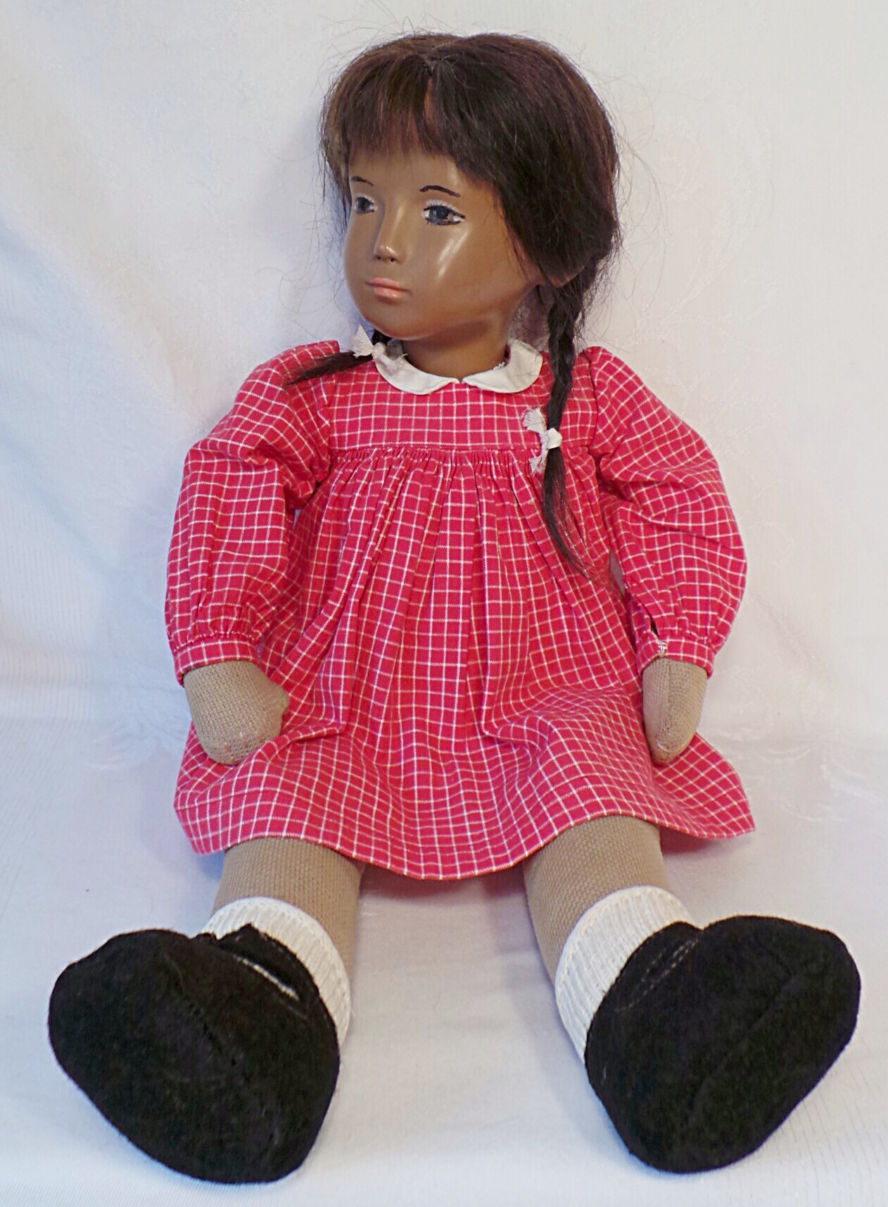 This is Abby, an early Sasha studio doll with a cloth face and yarn braids. She has a type A body and a facemask I, and so she is an AI studio doll. Abby’s limbs were replaced by Trudi Loffler and I have her original worn limbs stored away. I love this beautiful girl. ❤