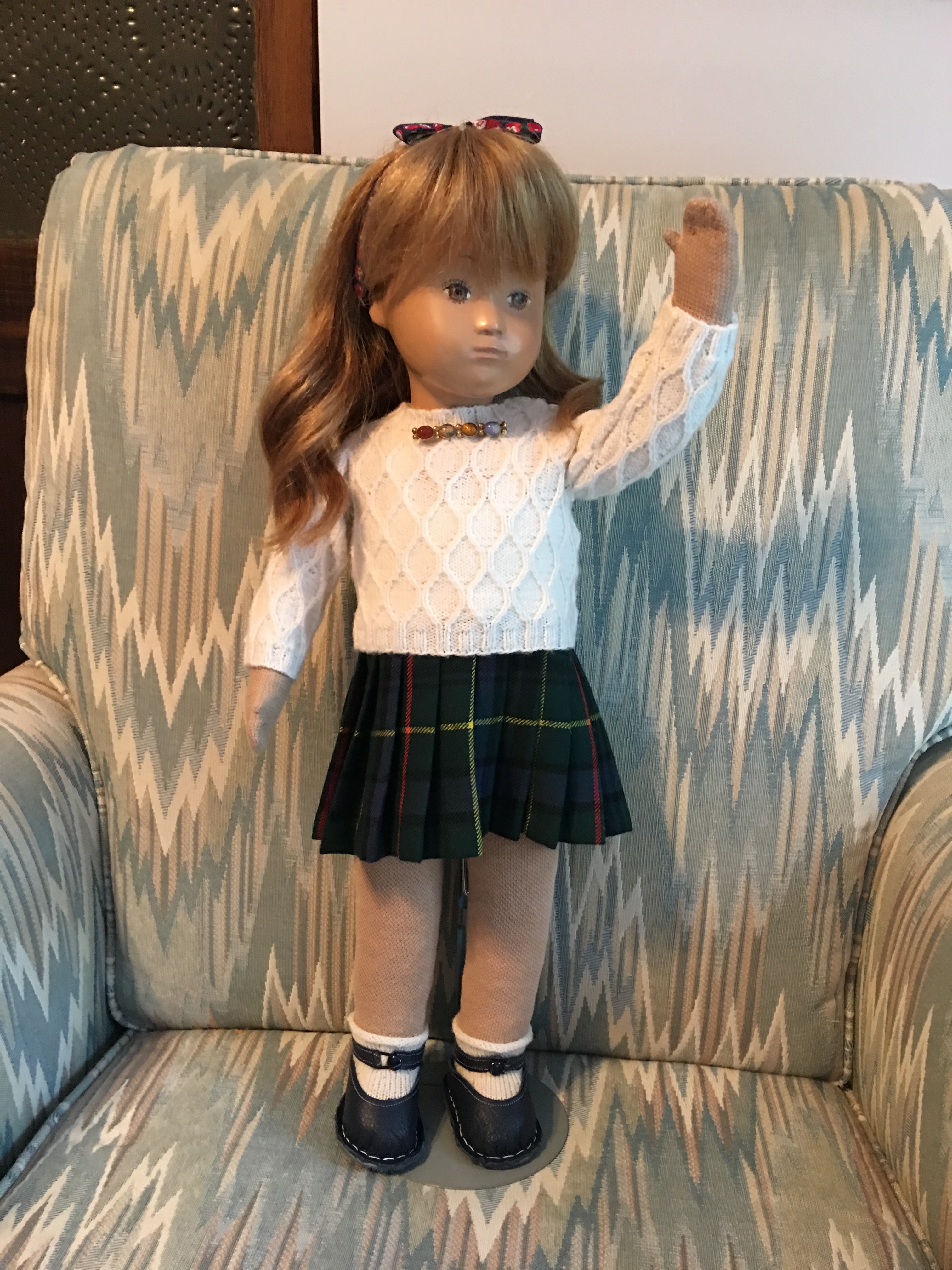 Next, I am so excited to share with you my beautiful school girl outfit hand made by Brigitte Schwitter.  Brigitte also made my socks and shoes.  I am on cloud nine! ❤️